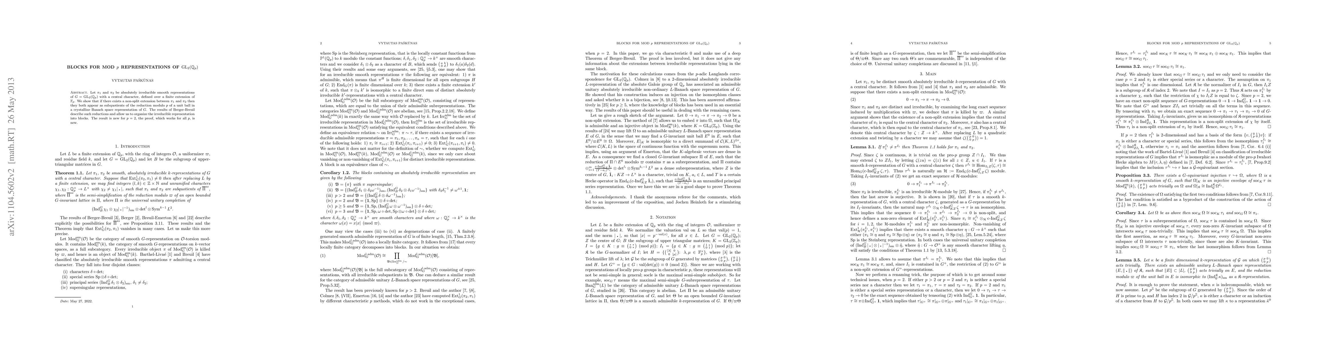 Let $\pi_1$ and $\pi_2$ be absolutely irreducible smooth representations of $G=GL_2(Q_p)$ with a central character, defined over a finite field of characteristic $p$. We show that if there exists a non-split extension between $\pi_1$ and $\pi_2$ then they both appear as subquotients of the reduction modulo $p$ of a unit ball in a crystalline Banach space representation of $G$. The results of Berger-Breuil describe such reductions and allow us to organize the irreducible representation into blocks. The result is new for $p=2$, the proof, which works for all $p$, is new.