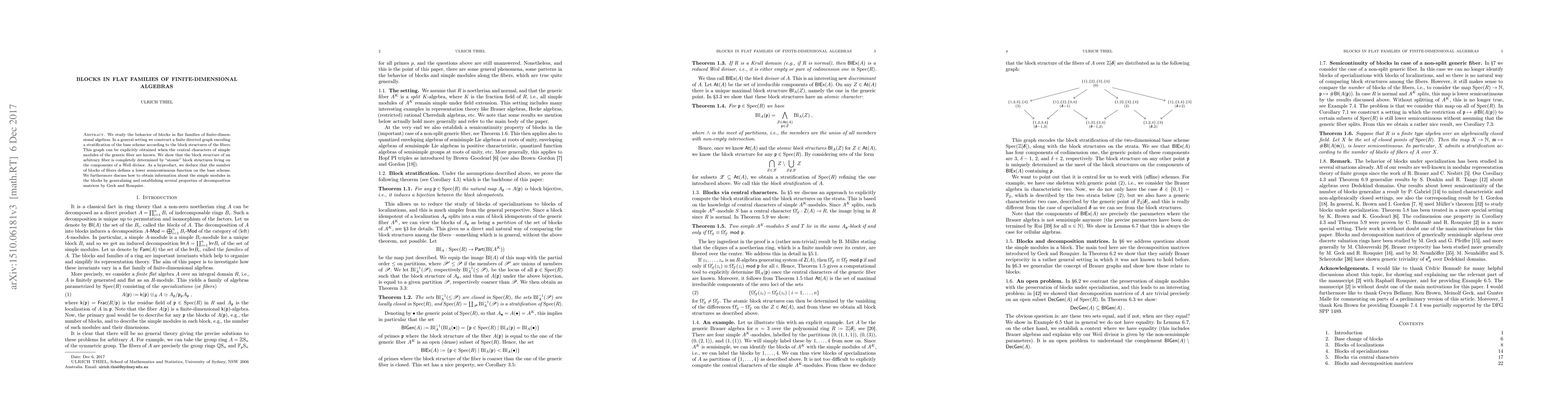 We study the behavior of blocks in flat families of finite-dimensional algebras. In a general setting we construct a finite directed graph encoding a stratification of the base scheme according to the block structures of the fibers. This graph can be explicitly obtained when the central characters of simple modules of the generic fiber are known. We show that the block structure of an arbitrary fiber is completely determined by "atomic" block structures living on the components of a Weil divisor. As a byproduct, we deduce that the number of blocks of fibers defines a lower semicontinuous function on the base scheme. We furthermore discuss how to obtain information about the simple modules in the blocks by generalizing and establishing several properties of decomposition matrices by Geck and Rouquier.