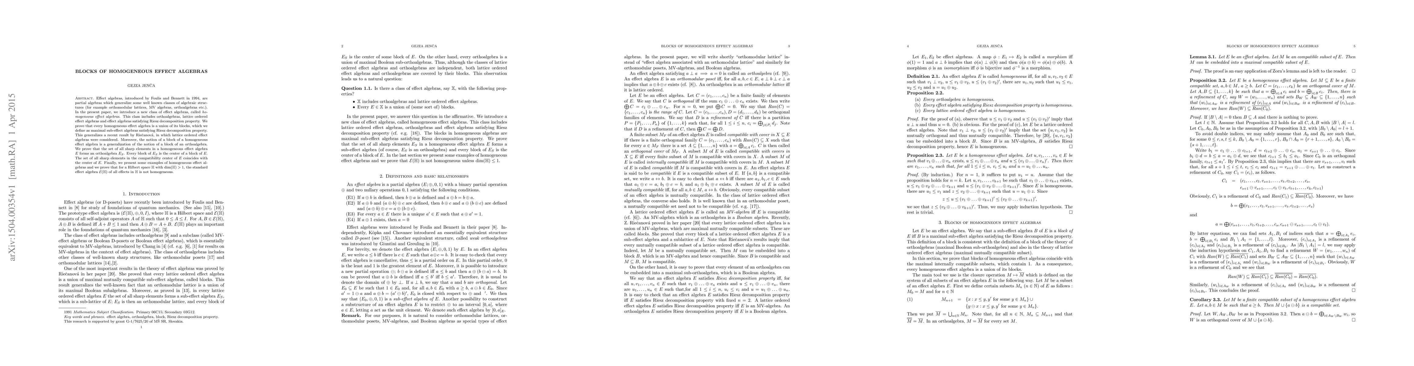 The paper defines and characterizes homogeneous effect algebras, proves their decomposition into blocks, and establishes relationships between sharp elements and the compatibility center.