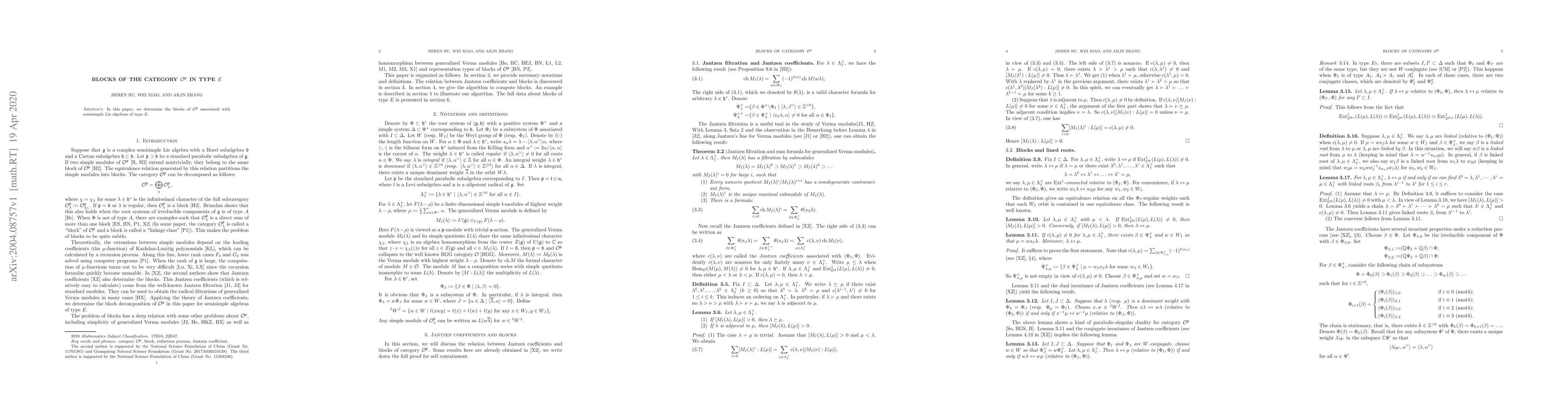 Summary: This paper identifies and analyzes the blocks of the category $\mathcal{O}^\mathfrak{p}$ for semisimple Lie algebras of type $E$, providing a detailed classification of these blocks.
