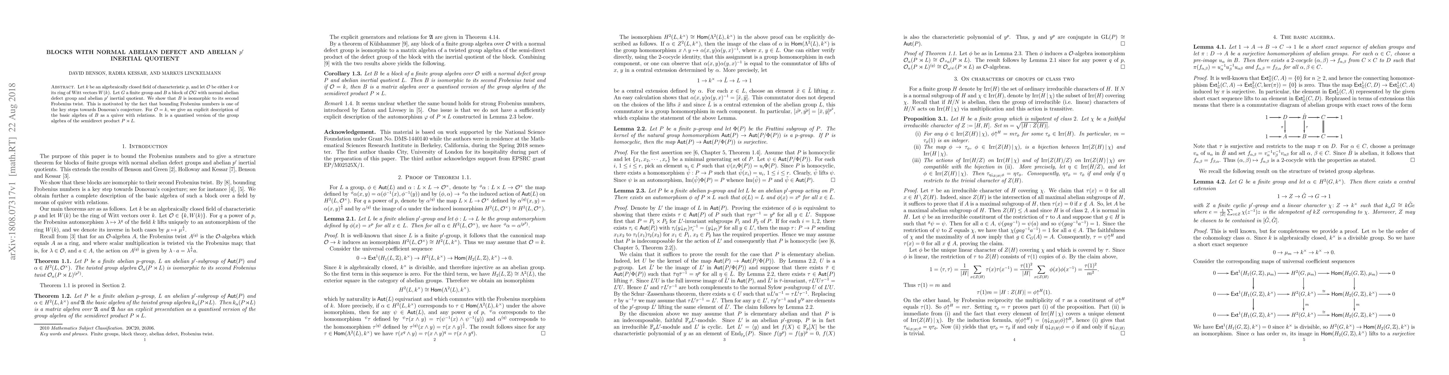 Markus Linckelmann, Radha Kessar, David Benson
