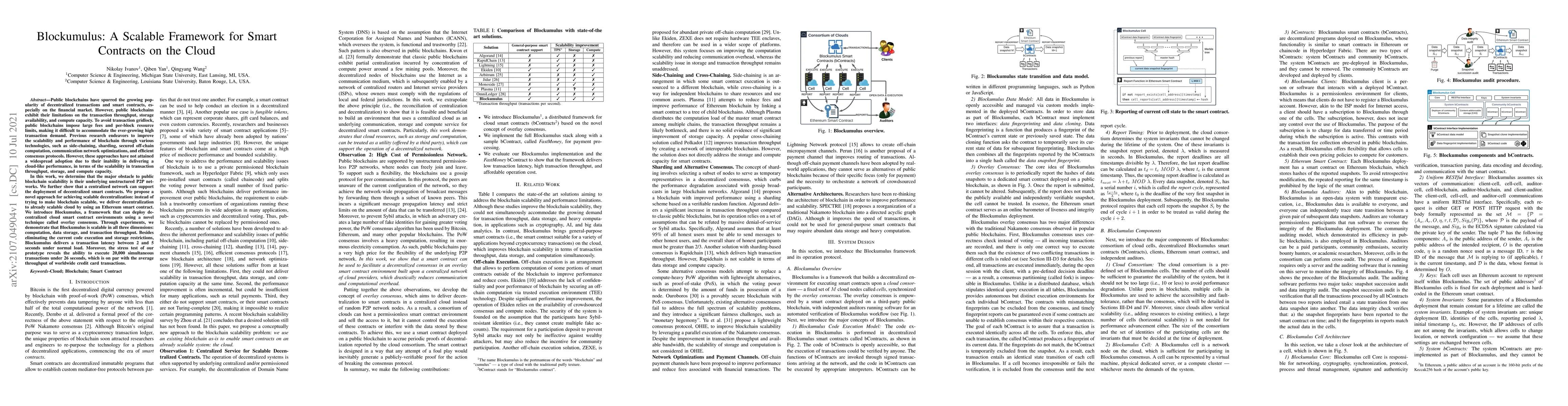 This paper introduces Blockumulus, a framework that leverages cloud scalability to deploy decentralized smart contracts, achieving transaction throughput of 20,000 transactions under 26 seconds.