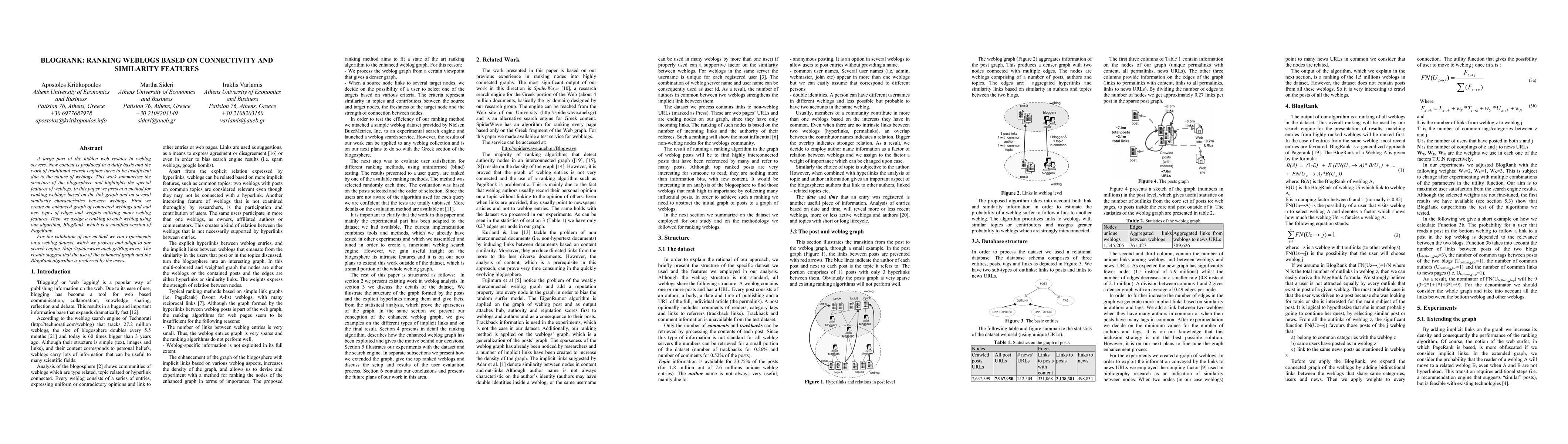 A large part of the hidden web resides in weblog servers. New content is produced in a daily basis and the work of traditional search engines turns to be insufficient due to the nature of weblogs. This work summarizes the structure of the blogosphere and highlights the special features of weblogs. In this paper we present a method for ranking weblogs based on the link graph and on several similarity characteristics between weblogs. First we create an enhanced graph of connected weblogs and add new types of edges and weights utilising many weblog features. Then, we assign a ranking to each weblog using our algorithm, BlogRank, which is a modified version of PageRank. For the validation of our method we run experiments on a weblog dataset, which we process and adapt to our search engine. (http://spiderwave.aueb.gr/Blogwave). The results suggest that the use of the enhanced graph and the BlogRank algorithm is preferred by the users.