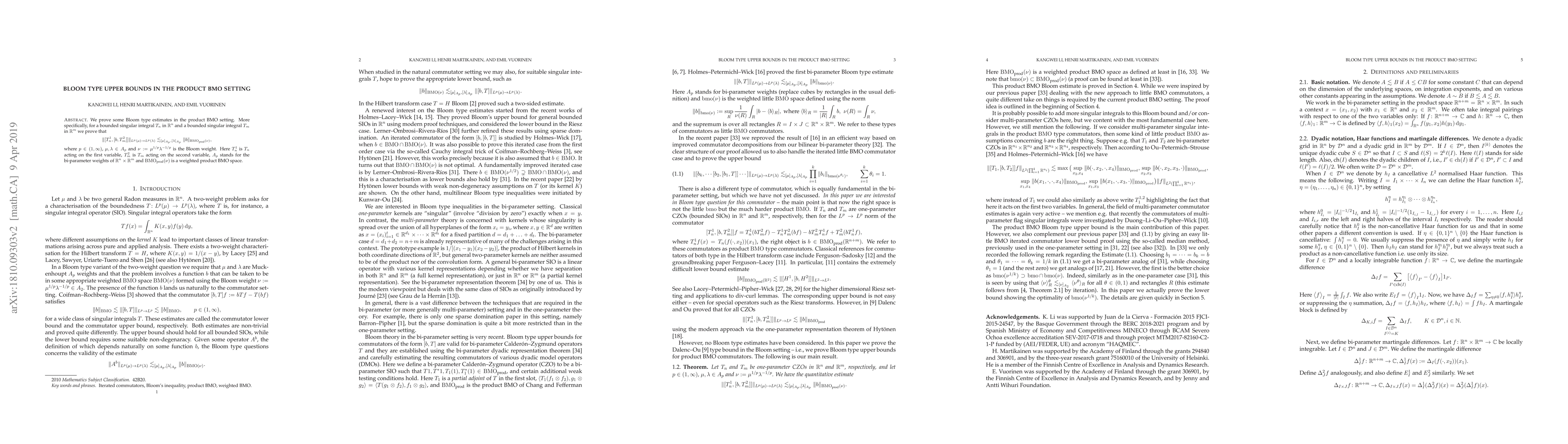 This paper establishes an upper bound for the operator norm of a composition involving bounded singular integrals in $\mathbb{R}^n$ and $\mathbb{R}^m$, showing that it is controlled by the $\operatorname{BMO}_{\textrm{prod}}$ norm of a function $b$ under certain conditions on the measure weights. The result is significant for the study of product BMO spaces and bi-parameter weights.