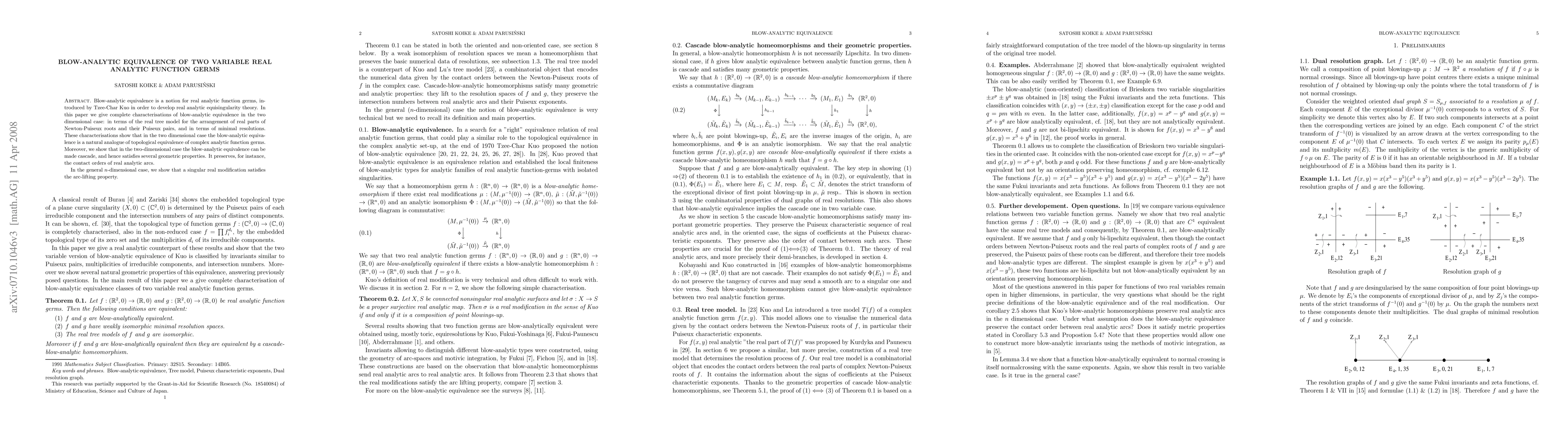 A combination of algebraic geometry and singularity theory was used to study blow-analytic equivalence.
