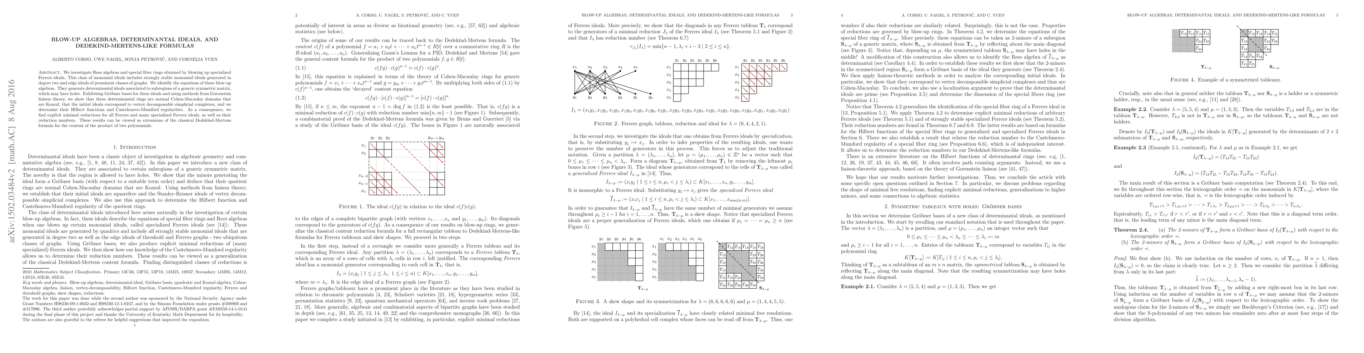 We investigate Rees algebras and special fiber rings obtained by blowing up specialized Ferrers ideals. This class of monomial ideals includes strongly stable monomial ideals generated in degree two and edge ideals of prominent classes of graphs. We identify the equations of these blow-up algebras. They generate determinantal ideals associated to subregions of a generic symmetric matrix, which may have holes. Exhibiting Gr\"obner bases for these ideals and using methods from Gorenstein liaison theory, we show that these determinantal rings are normal Cohen-Macaulay domains that are Koszul, that the initial ideals correspond to vertex decomposable simplicial complexes, and we determine their Hilbert functions and Castelnuovo-Mumford regularities. As a consequence, we find explicit minimal reductions for all Ferrers and many specialized Ferrers ideals, as well as their reduction numbers. These results can be viewed as extensions of the classical Dedekind-Mertens formula for the content of the product of two polynomials.