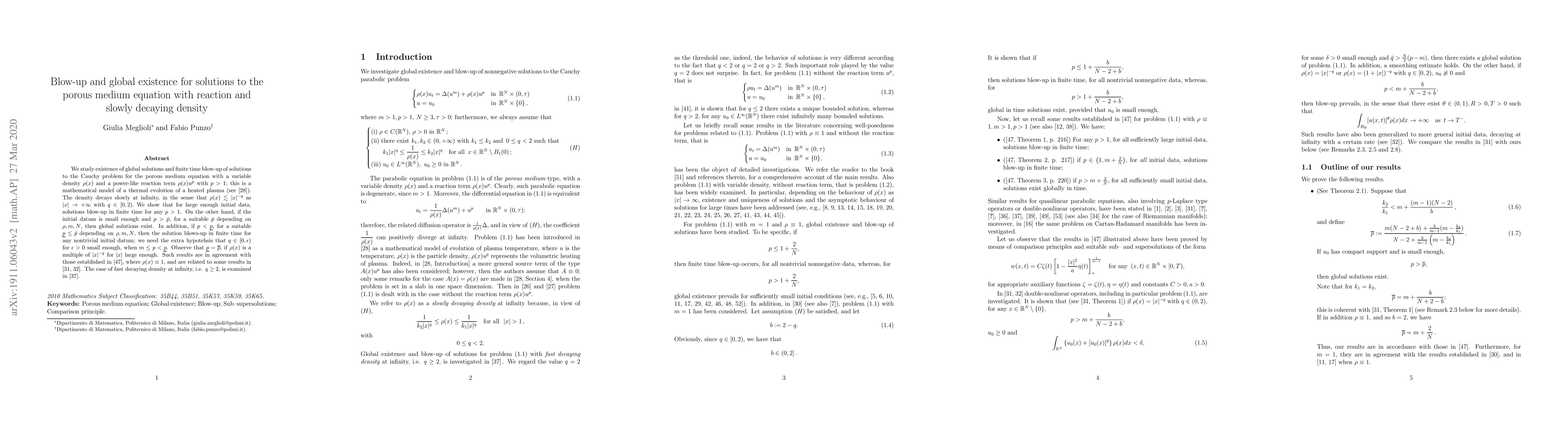 This paper investigates the existence of global solutions and finite time blow-up for the porous medium equation with a variable density and a power-like reaction term. It finds that large initial data leads to finite time blow-up, while small enough initial data with a sufficiently high reaction exponent allows for global solutions.