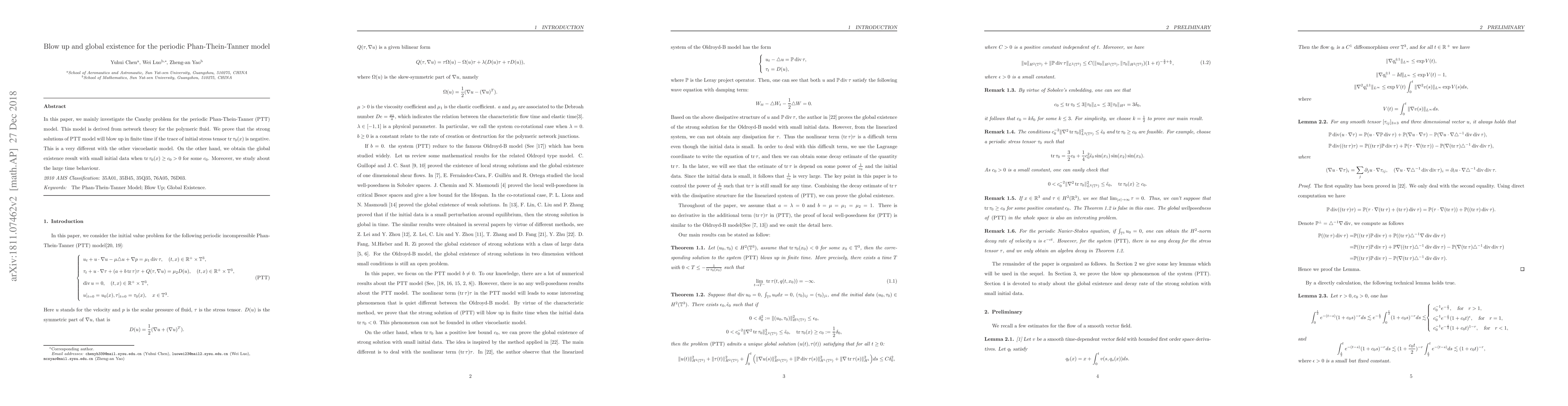 In this paper, we mainly investigate the Cauchy problem for the periodic Phan-Thein-Tanner (PTT) model. This model is derived from network theory for the polymeric fluid. We prove that the strong solutions of PTT model will blow up in finite time if the trace of initial stress tensor $\tr \tau_0(x)$ is negative. This is a very different with the other viscoelastic model. On the other hand, we obtain the global existence result with small initial data when $\tr \tau_0(x)\geq c_0>0$ for some $c_0$. Moreover, we study about the large time behavior.