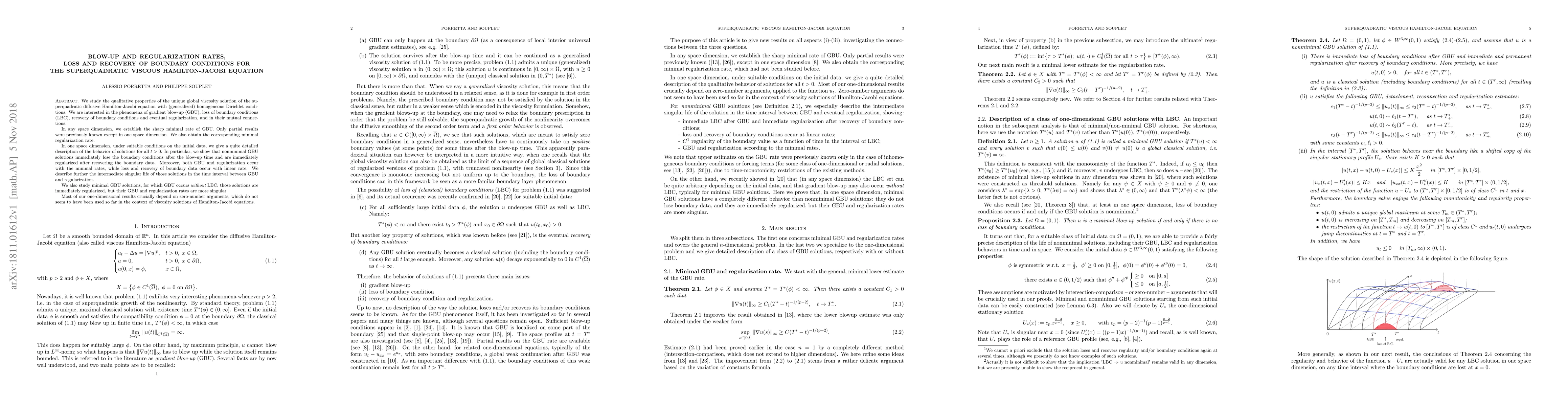 We study the qualitative properties of the unique global viscosity solution of the superquadratic diffusive Hamilton-Jacobi equation with (generalized) homogeneous Dirichlet conditions. We are interested in the phenomena of gradient blow-up (GBU), loss of boundary conditions (LBC), recovery of boundary conditions and eventual regularization, and in their mutual connections. In any space dimension, we establish the sharp minimal rate of GBU. Only partial results were previously known except in one space dimension. We also obtain the corresponding minimal regularization rate. In one space dimension, under suitable conditions on the initial data, we give a quite detailed description of the behavior of solutions for all $t>0$. In particular, we show that nonminimal GBU solutions immediately lose the boundary conditions after the blow-up time and are immediately regularized after recovering the boundary data. Moreover, both GBU and regularization occur with the minimal rates, while loss and recovery of boundary data occur with linear rate. We describe further the intermediate singular life of those solutions in the time interval between GBU and regularization. We also study minimal GBU solutions, for which GBU occurs {\it without} LBC: those solutions are immediately regularized, but their GBU and regularization rates are more singular. Most of our one-dimensional results crucially depend on zero-number arguments, which do not seem to have been used so far in the context of viscosity solutions of Hamilton-Jacobi equations.