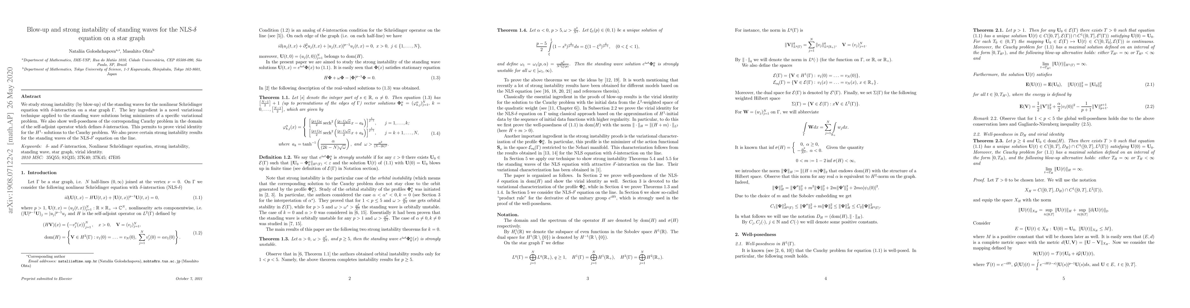 This paper investigates the strong instability and blow-up phenomena of standing waves for the NLS-$\delta$ equation on a star graph, employing a novel variational technique. It establishes well-posedness of the Cauchy problem and proves a virial identity for $H^1$ solutions, along with strong instability results for the NLS-$\delta'$ equation on the line.