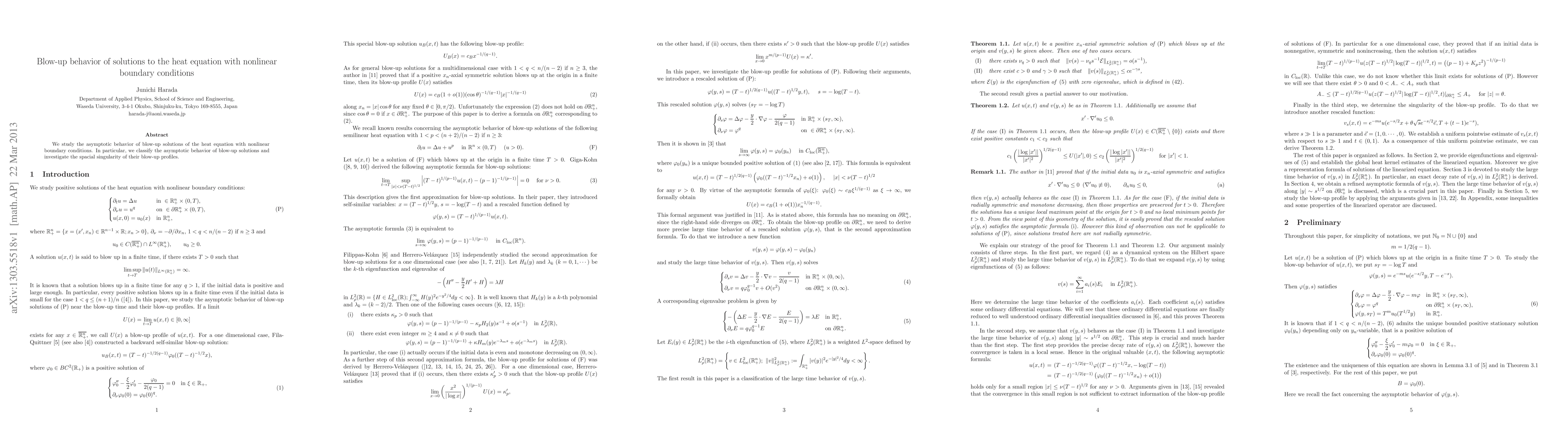 We study the asymptotic behavior of blow-up solutions of the heat equation with nonlinear boundary conditions. In particular, we classify the asymptotic behavior of blow-up solutions and investigate the spacial singularity of their blow-up profiles.