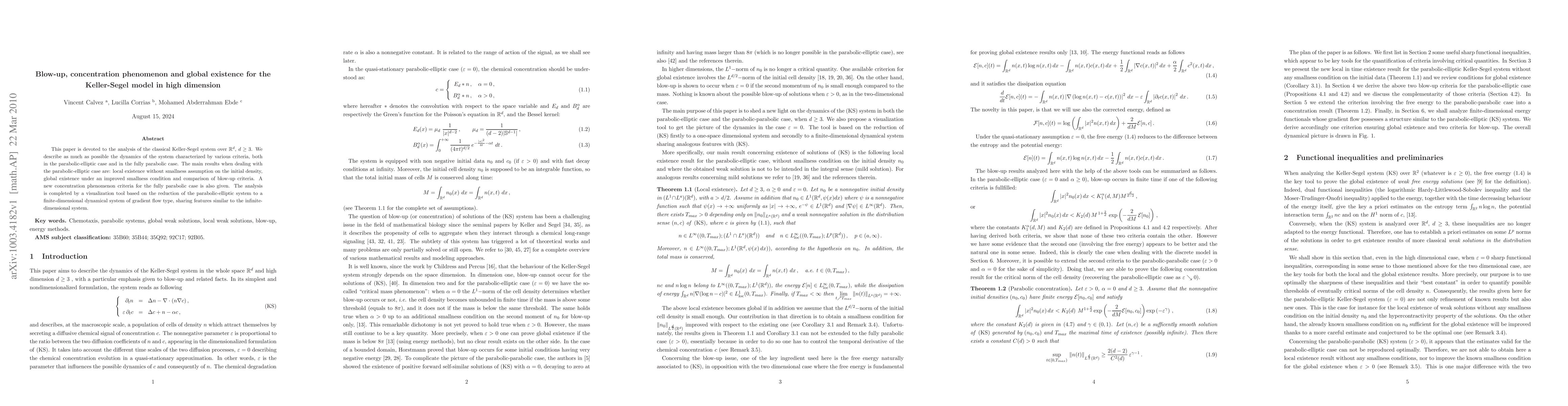 This paper analyzes the Keller-Segel model in high dimension, exploring local and global existence under various conditions, including a new concentration phenomenon criteria for the fully parabolic case.