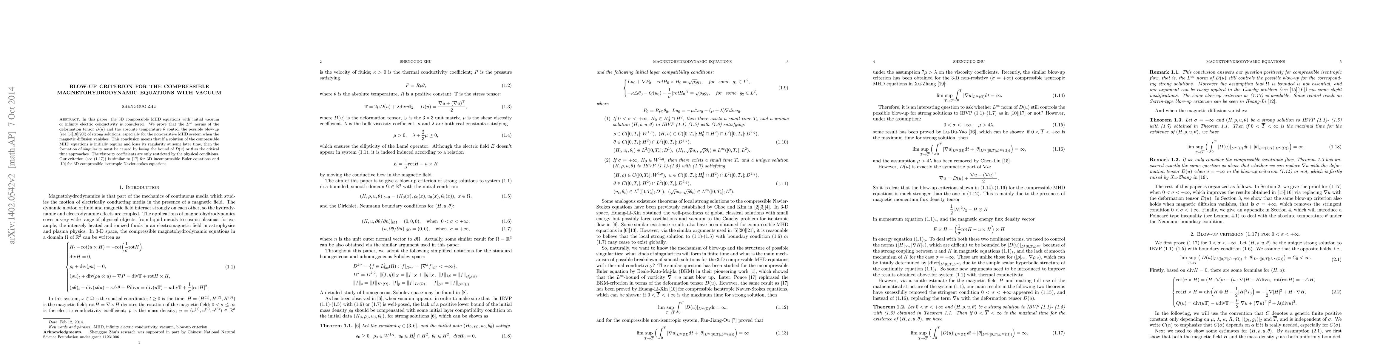 This paper establishes a blow-up criterion for the 3-D compressible magnetohydrodynamic (MHD) equations with initial vacuum or infinite electric conductivity, showing that the $L^\infty$ norms of the deformation tensor and absolute temperature control the potential for singularity formation in strong solutions. The criterion indicates that loss of regularity is linked to unbounded growth of these quantities as critical time is approached.