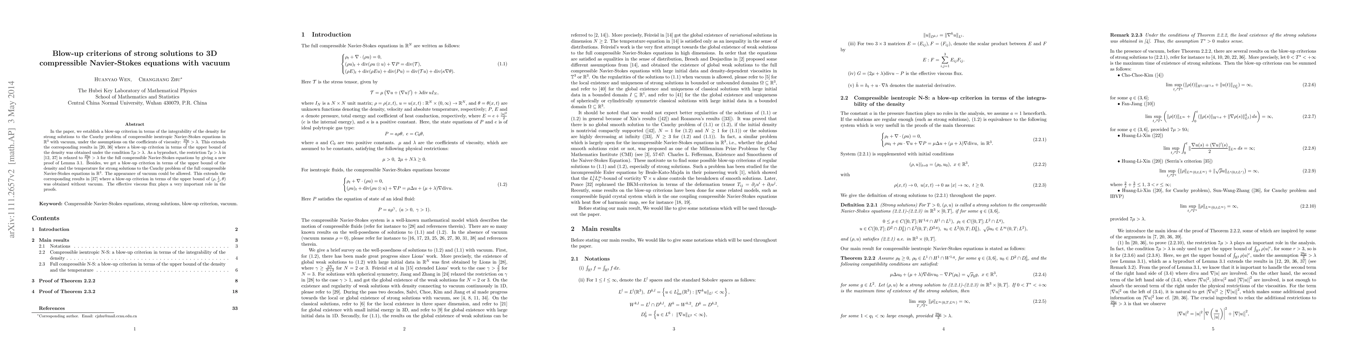 This paper establishes a new blow-up criterion for strong solutions to the 3D compressible Navier-Stokes equations with vacuum, showing that the density's integrability determines blow-up under the condition \( \frac{29\mu}{3} > \lambda \). It extends previous results by relaxing the viscosity condition and introducing a criterion based on density and temperature.