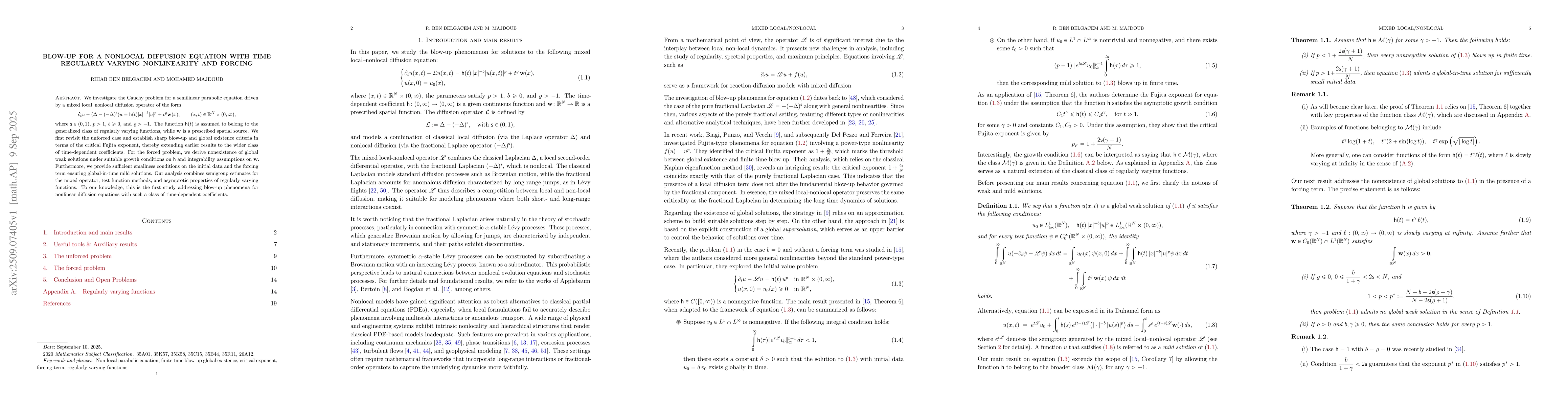 We investigate the Cauchy problem for a semilinear parabolic equation driven by a mixed local-nonlocal diffusion operator of the form \[ \partial_t u - (\Delta - (-\Delta)^{\mathsf{s}})u = \mathsf{h}(t)|x|^{-b}|u|^p + t^\varrho \mathbf{w}(x), \qquad (x,t)\in \mathbb{R}^N\times (0,\infty), \] where $\mathsf{s}\in (0,1)$, $p>1$, $b\geq 0$, and $\varrho>-1$. The function $\mathsf{h}(t)$ is assumed to belong to the generalized class of regularly varying functions, while $\mathbf{w}$ is a prescribed spatial source. We first revisit the unforced case and establish sharp blow-up and global existence criteria in terms of the critical Fujita exponent, thereby extending earlier results to the wider class of time-dependent coefficients. For the forced problem, we derive nonexistence of global weak solutions under suitable growth conditions on $\mathsf{h}$ and integrability assumptions on $\mathbf{w}$. Furthermore, we provide sufficient smallness conditions on the initial data and the forcing term ensuring global-in-time mild solutions. Our analysis combines semigroup estimates for the mixed operator, test function methods, and asymptotic properties of regularly varying functions. To our knowledge, this is the first study addressing blow-up phenomena for nonlinear diffusion equations with such a class of time-dependent coefficients.