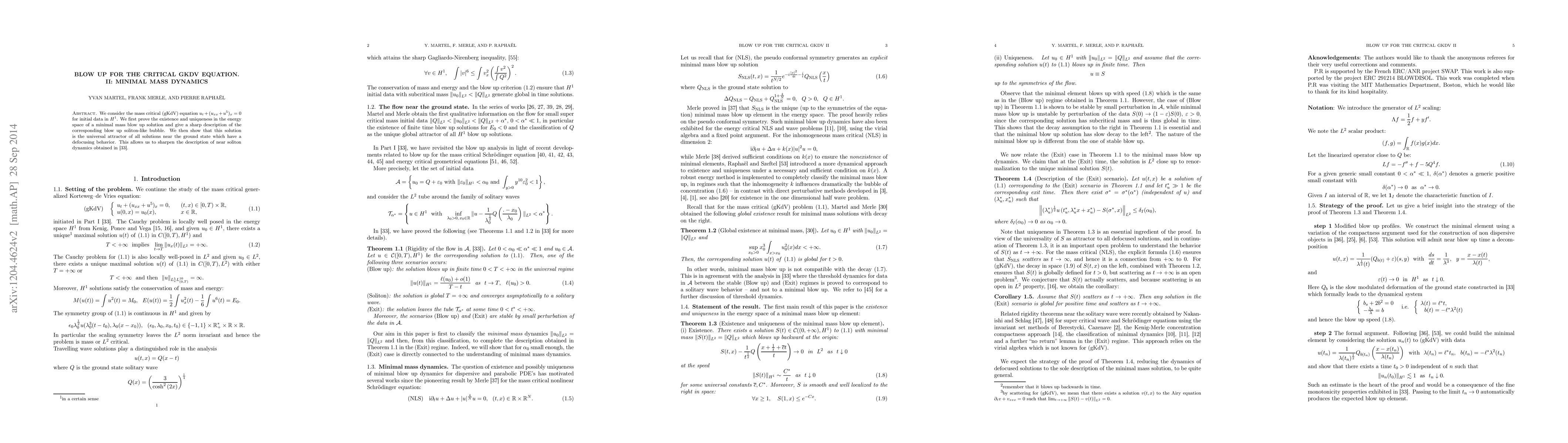 We fully revisit the near soliton dynamics for the mass critical (gKdV) equation. In Part I, for a class of initial data close to the soliton, we prove that only three scenario can occur: (BLOW UP) the solution blows up in finite time $T$ in a universal regime with speed $1/(T-t)$; (SOLITON) the solution is global and converges to a soliton in large time; (EXIT) the solution leaves any small neighborhood of the modulated family of solitons in the scale invariant $L^2$ norm. Regimes (BLOW UP) and (EXIT) are proved to be stable. We also show in this class that any nonpositive energy initial data (except solitons) yields finite time blow up, thus obtaining the classification of the solitary wave at zero energy. In Part II, we classify minimal mass blow up by proving existence and uniqueness (up to invariances of the equation) of a minimal mass blow up solution $S(t)$. We also completely describe the blow up behavior of $S(t)$. Second, we prove that $S(t)$ is the universal attractor in the (EXIT) case, i.e. any solution as above in the (EXIT) case is close to $S$ (up to invariances) in $L^2$ at the exit time. In particular, assuming scattering for $S(t)$ (in large positive time), we obtain that any solution in the (EXIT) scenario also scatters, thus achieving the description of the near soliton dynamics.
