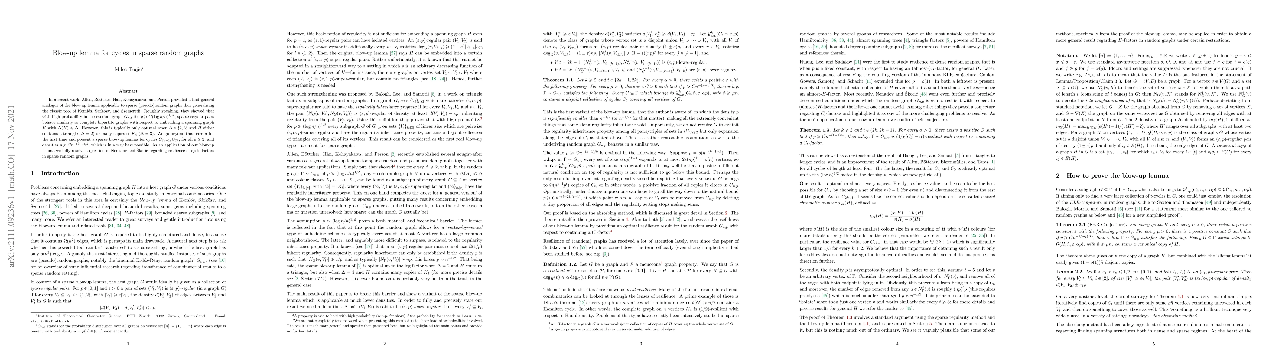 This paper extends the blow-up lemma to sparse random graphs, showing that sparse regular pairs can embed spanning graphs $H$ with $\Delta(H) \leq \Delta$ similarly to complete bipartite graphs. The authors present a best-possible sparse blow-up lemma for cycles $C_{2k-1}$ and $C_{2k}$ for all $k \geq 2$, resolving a question on the resilience of cycle factors in these graphs.