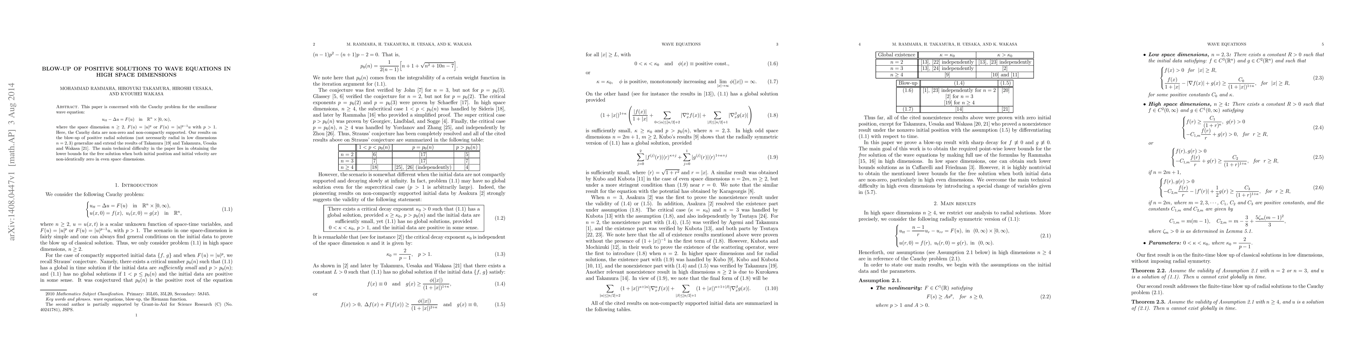 This paper is concerned with the Cauchy problem for the semilinear wave equation: $u_{tt}-\Delta u=F(u) \ \mbox{in} \ R^n\times[0, \infty)$, where the space dimension $n \ge 2$, $F(u)=|u|^p$ or $F(u)=|u|^{p-1}u$ with $p>1$. Here, the Cauchy data are non-zero and non-compactly supported. Our results on the blow-up of positive radial solutions (not necessarily radial in low dimensions $n=2, 3$) generalize and extend the results of Takamura(1995) and Takamura, Uesaka and Wakasa(2011). The main technical difficulty in the paper lies in obtaining the lower bounds for the free solution when both initial position and initial velocity are non-identically zero in even space dimensions.