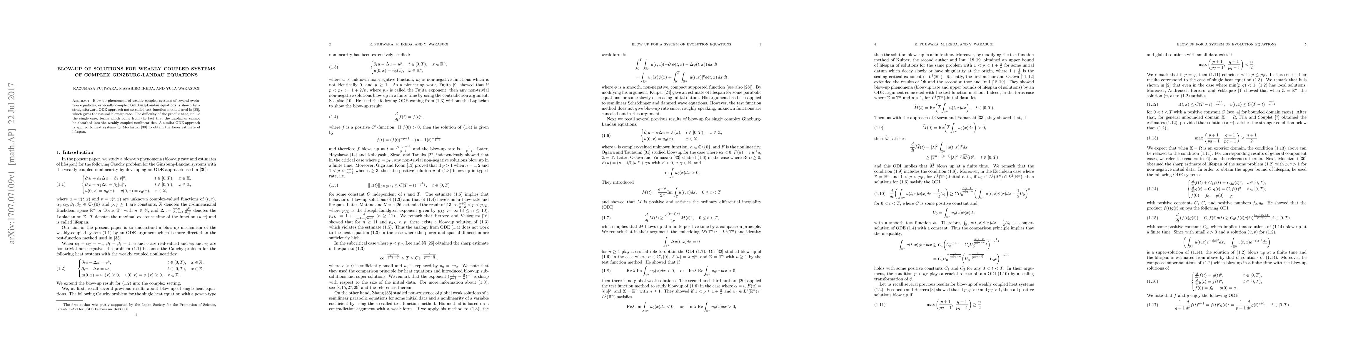 Blow-up phenomena ofvweakly coupled systems of several evolution equations, especially complex Ginzburg-Landau equationsvis shown by a straightforward ODE approach not so-called test-function method, which gives the natural blow-up rate. The difficulty of the proof is that, unlike the single case, terms which come from the fact that the Laplacian cannot be absorbed into the weakly coupled nonlinearities. A similar ODE approach is applied to heat systems by Mochizuki to obtain the lower estimate of lifespan.