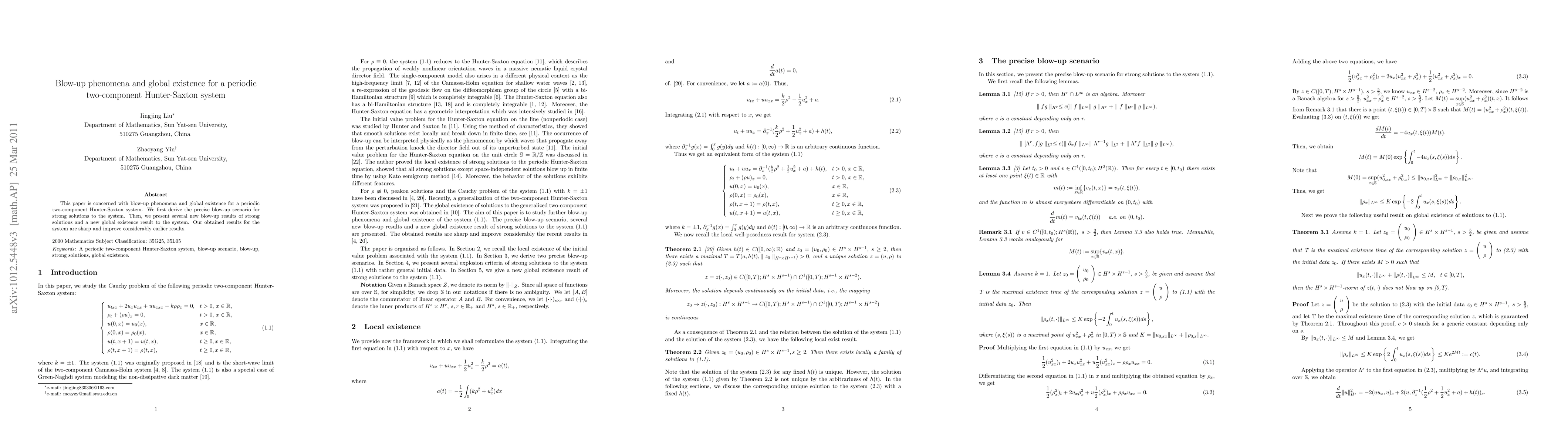 This paper investigates blow-up phenomena and global existence for a periodic two-component Hunter-Saxton system, deriving precise blow-up scenarios and presenting new results that significantly improve upon earlier findings.