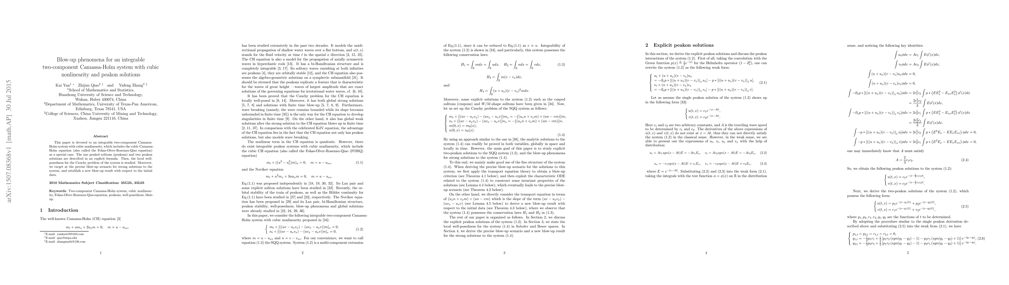 This paper investigates a two-component Camassa-Holm system with cubic nonlinearity, exploring peakon solutions and their behavior. It establishes local well-posedness and a new blow-up result linked to initial data.