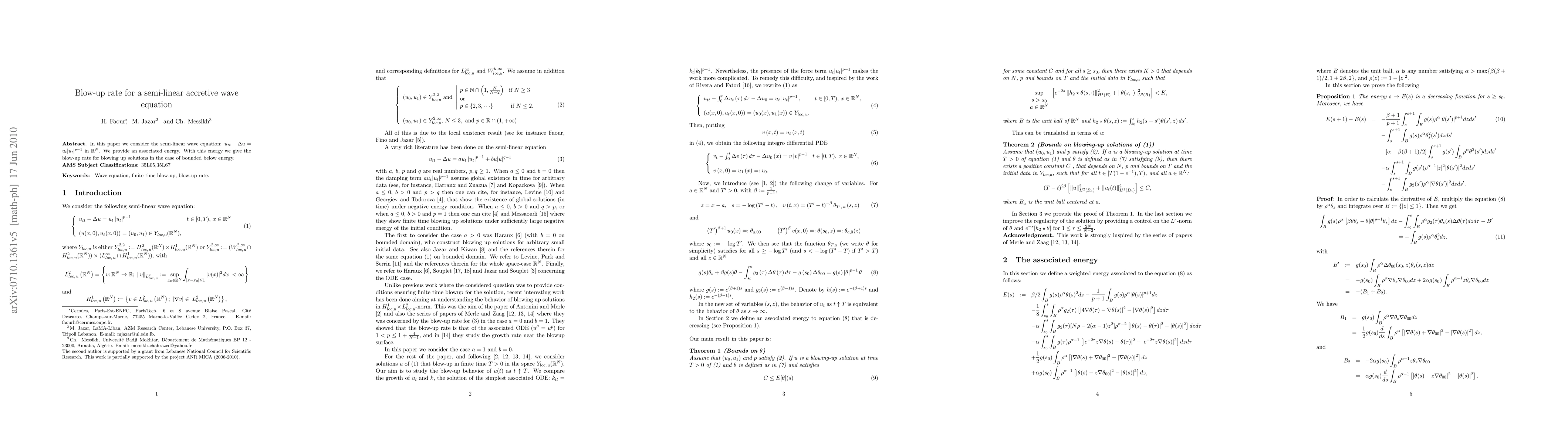 This paper studies a semi-linear wave equation and provides an energy associated with it to determine the blow-up rate of solutions with bounded below energy. The research aims to understand how solutions behave as they approach a maximum value.