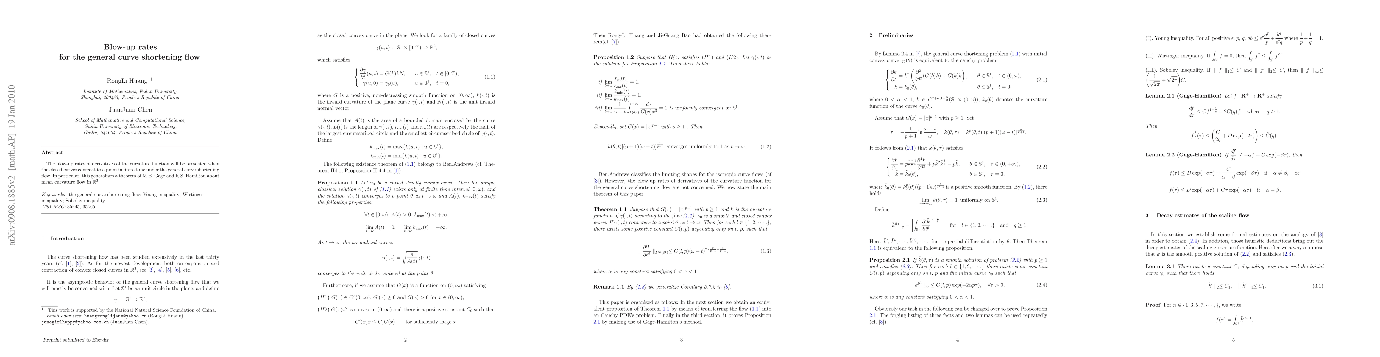 The blow-up rates of derivatives of the curvature function will be presented when the closed curves contract to a point in finite time under the general curve shortening flow. In particular, this generalizes a theorem of M.E. Gage and R.S. Hamilton about mean curvature flow in $\mathbb{R}^{2}$.