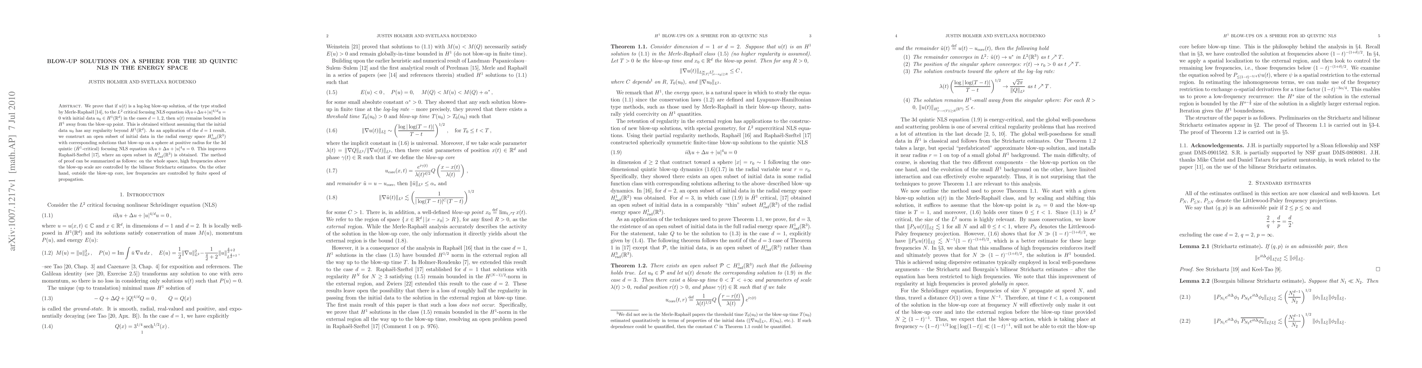 We prove that if $u(t)$ is a log-log blow-up solution, of the type studied by Merle-Rapha\"el (2001-2005), to the $L^2$ critical focusing NLS equation $i\partial_t u +\Delta u + |u|^{4/d} u=0$ with initial data $u_0\in H^1(\mathbb{R}^d)$ in the cases $d=1, 2$, then $u(t)$ remains bounded in $H^1$ away from the blow-up point. This is obtained without assuming that the initial data $u_0$ has any regularity beyond $H^1(\mathbb{R}^d)$. As an application of the $d=1$ result, we construct an open subset of initial data in the radial energy space $H^1_{rad}(\mathbb{R}^3)$ with corresponding solutions that blow-up on a sphere at positive radius for the 3d quintic ($\dot H^1$-critical) focusing NLS equation $i\partial_tu + \Delta u + |u|^4u=0$. This improves Rapha\"el-Szeftel (2009), where an open subset in $H^3_{rad}(\mathbb{R}^3)$ is obtained. The method of proof can be summarized as follows: on the whole space, high frequencies above the blow-up scale are controlled by the bilinear Strichartz estimates. On the other hand, outside the blow-up core, low frequencies are controlled by finite speed of propagation.