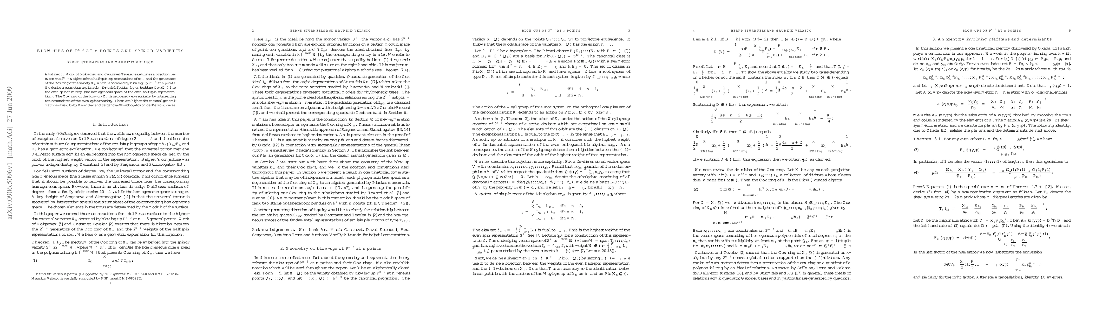 Work of Dolgachev and Castravet-Tevelev establishes a bijection between the $2^{n-1}$ weights of the half-spin representations of $\mathfrak{so}_{2n}$ and the generators of the Cox ring of the variety $X_n$ which is obtained by blowing up $\mathbb{P}^{n-3}$ at $n$ points. We derive a geometric explanation for this bijection, by embedding ${\rm Cox}(X_n)$ into the even spinor variety (the homogeneous space of the even half-spin representation). The Cox ring of the blow-up $X_n$ is recovered geometrically by intersecting torus translates of the even spinor variety. These are higher-dimensional generalizations of results by Derenthal and Serganova-Skorobogatov on del Pezzo surfaces.