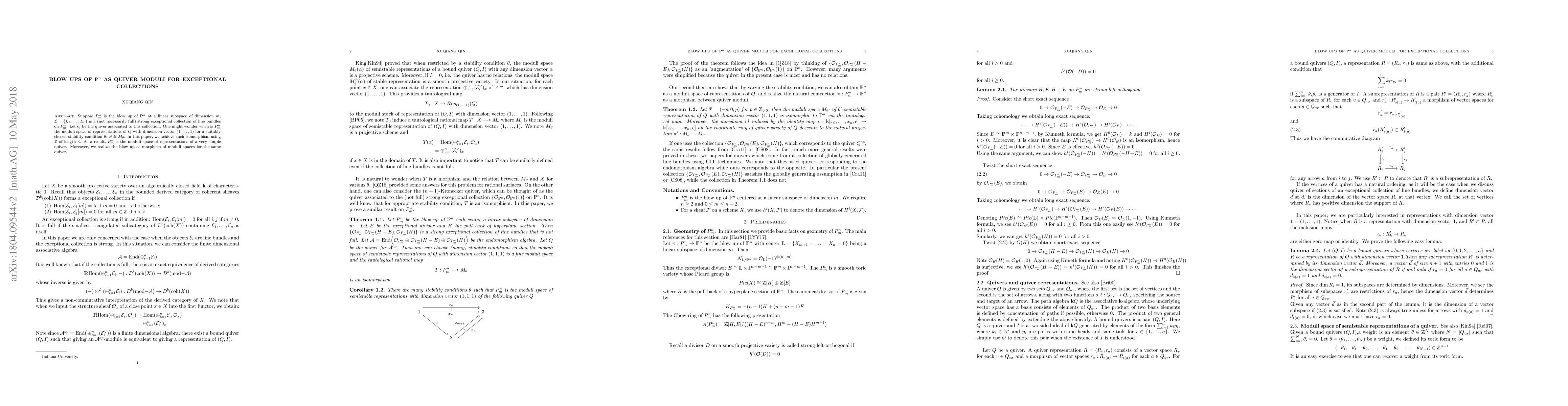 This paper investigates whether blow-ups of projective space $\mathbb{P}^n$ at a linear subspace can be identified as the moduli space of representations of a quiver associated with a strong exceptional collection of line bundles. The authors achieve this identification for blow-ups with a collection of length three, showing that these spaces correspond to the moduli space of representations of a simple quiver.