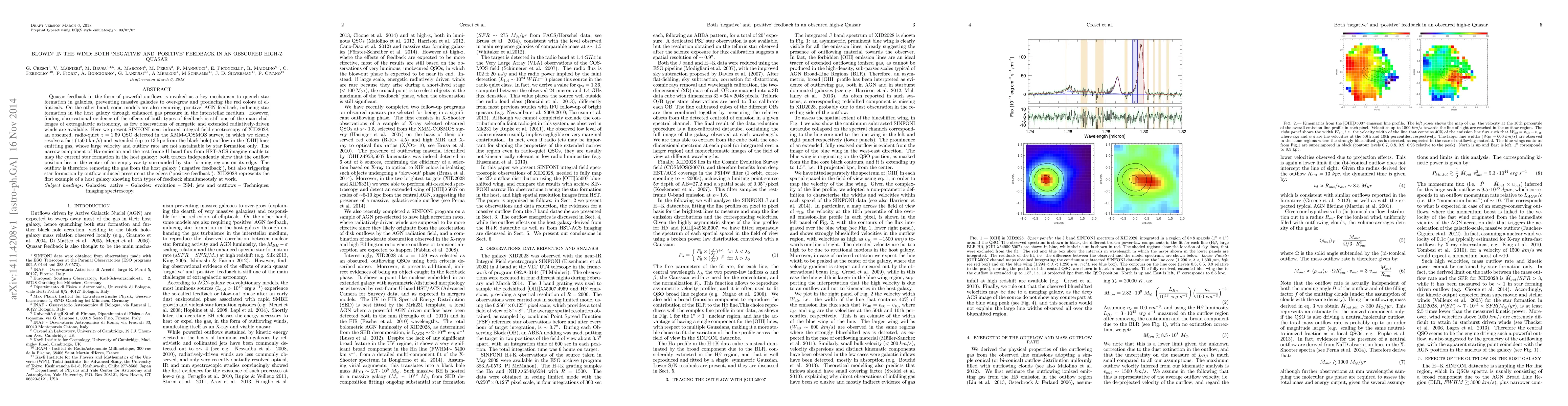 This paper presents evidence of both "negative" and "positive" AGN feedback in an obscured high-z quasar, XID2028, using SINFONI spectroscopy. The study reveals a fast outflow removing gas from the host galaxy while simultaneously triggering star formation at its edges due to induced pressure.