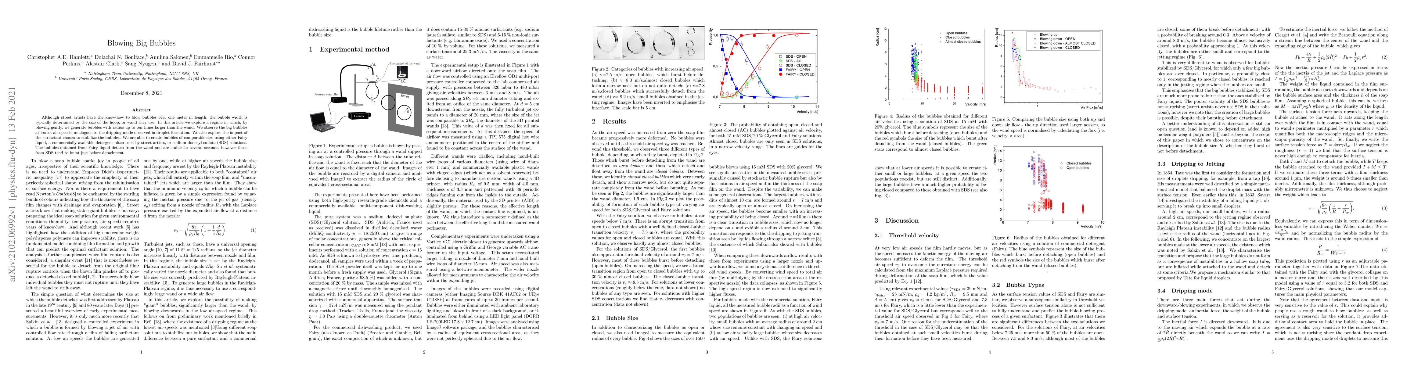 Although street artists have the know-how to blow bubbles over one meter in length, the bubble width is typically determined by the size of the hoop, or wand they use. In this article we explore a regime in which, by blowing gently, we generate bubbles with radius up to ten times larger than the wand. We observe the big bubbles at lowest air speeds, analogous to the dripping mode observed in droplet formation. We also explore the impact of the surfactant chosen to stabilize the bubbles. We are able to create bubbles of comparable size using either Fairy liquid, a commercially available detergent often used by street artists, or sodium dodecyl sulfate (SDS) solutions. The bubbles obtained from Fairy liquid detach from the wand and are stable for several seconds, however those from SDS tend to burst just before detachment.
