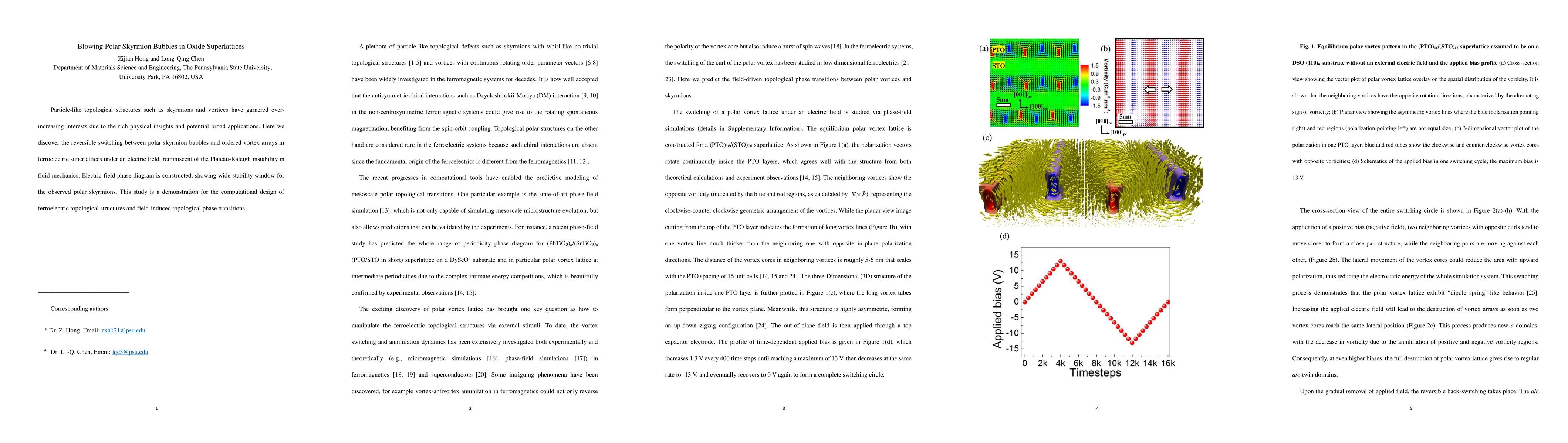 This paper reports the reversible switching of polar skyrmion bubbles to vortex arrays in ferroelectric superlattices under an electric field, akin to the Plateau-Raleigh instability. The study constructs an electric field phase diagram, revealing a wide stability window for the polar skyrmions, and demonstrates the potential for computational design of ferroelectric topological structures.