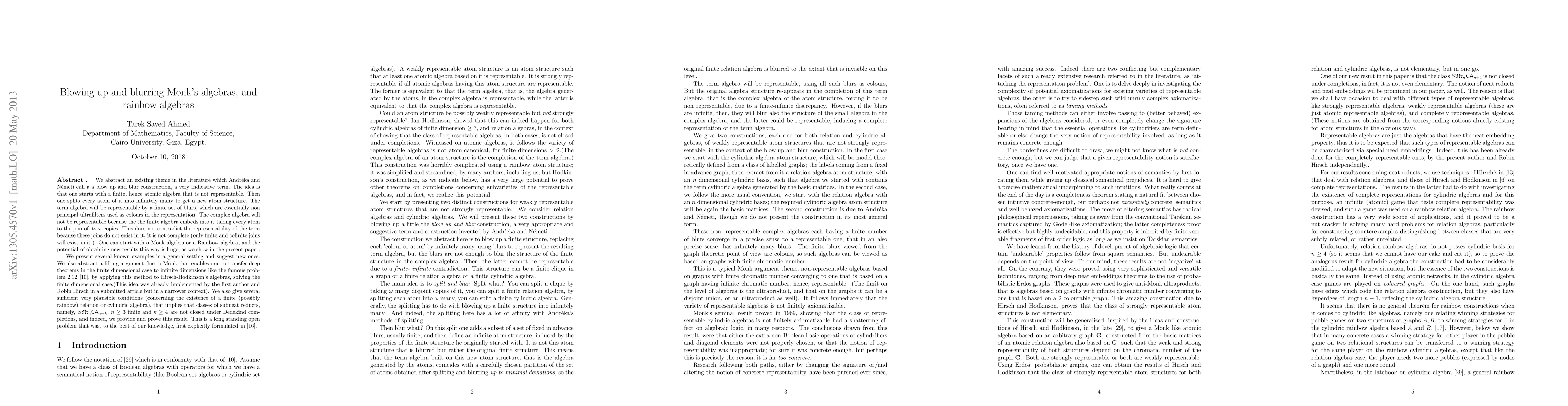 We use Monk like algebras to give a new proof that the classes of strongly representable relation algebras and finite dimensional cylindric algebras of dimension >2 are not elementary. Our construction is based on relation algebras have cylindric basis, so that we obtain the result for both in one go, since they are both based on the same graph. The proof also uses Erdos' graphs. We also show using a rainbow construction that the class SNr_n\CA_{n+k} is not atom canonical, for any k\geq 4.