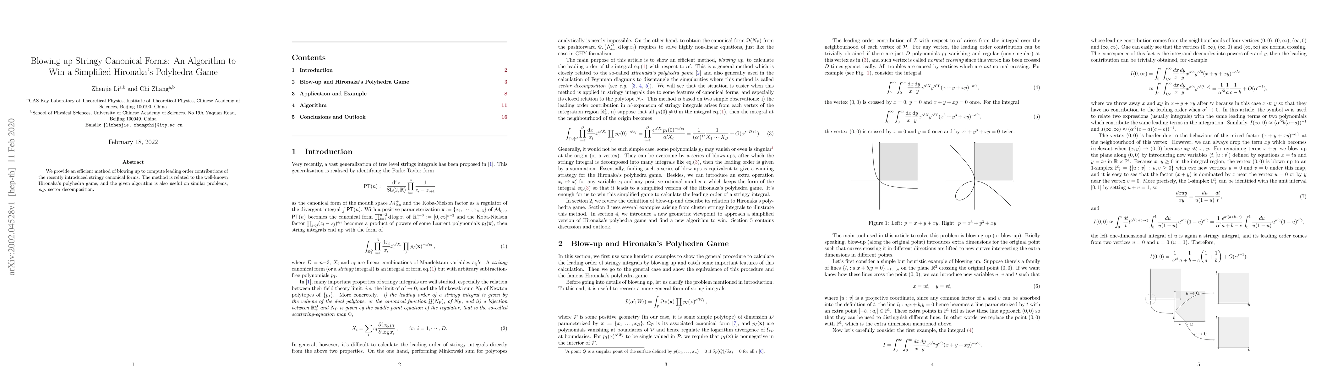 This paper presents an efficient algorithm for computing leading contributions of stringy canonical forms through a method of blowing up, which is connected to Hironaka's polyhedra game and can also be applied to sector decomposition problems.