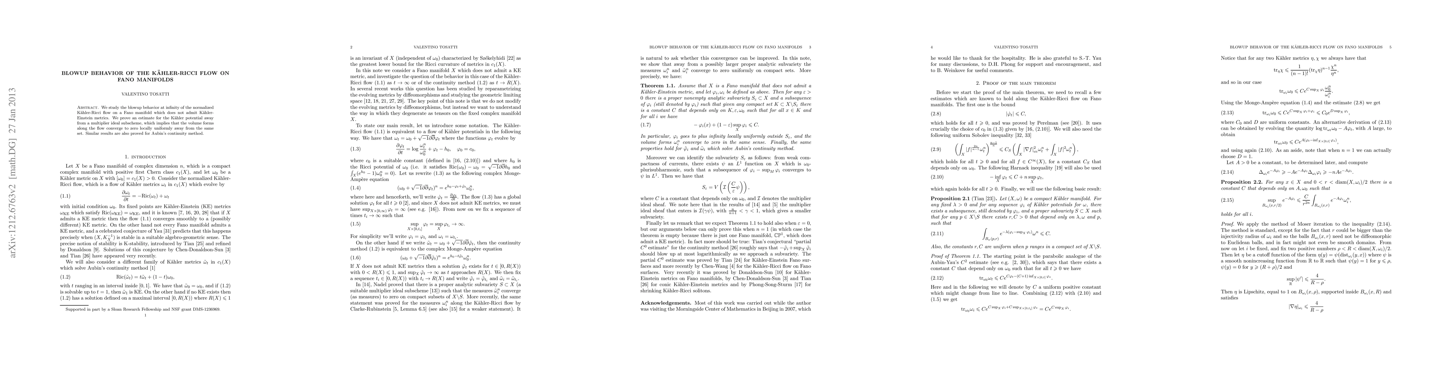 This paper investigates the behavior of the normalized Kahler-Ricci flow on Fano manifolds that lack Kahler-Einstein metrics, proving that volume forms converge to zero away from a specific subscheme. It also extends these findings to Aubin's continuity method.