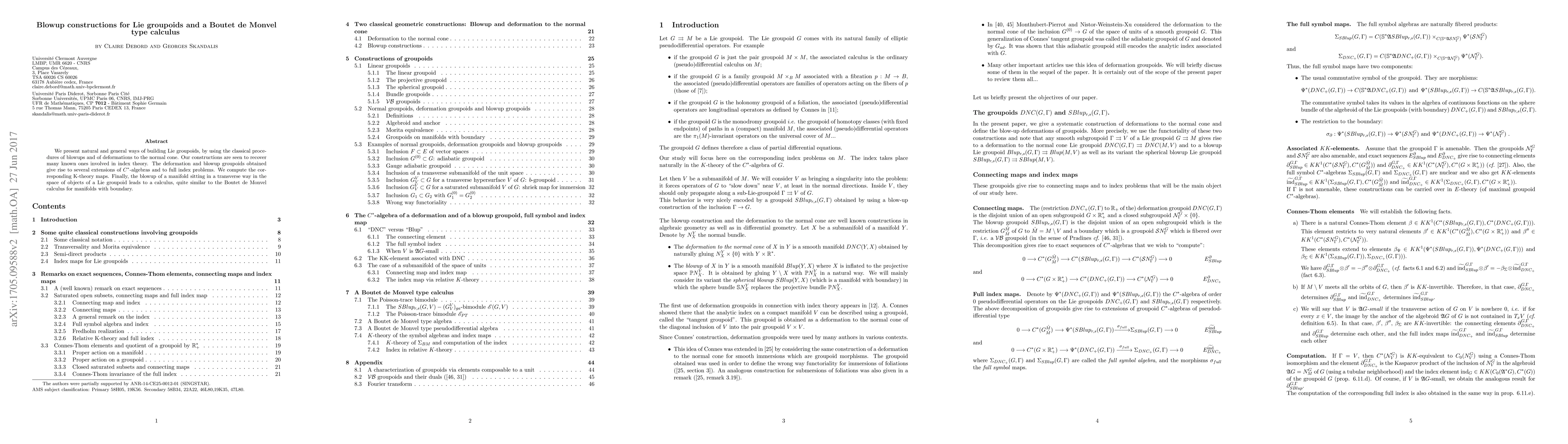 **Summary:** This paper details methods for constructing Lie groupoids through blowups and deformations, extending $C^*$-algebras, and computing K-theory maps. It also introduces a calculus analogous to Boutet de Monvel's for manifolds with boundaries when applied to Lie groupoids.
