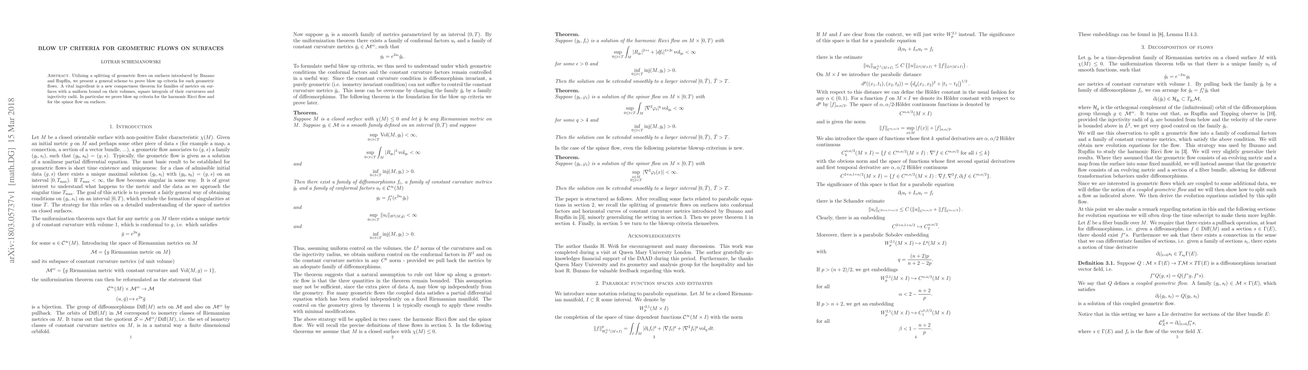 Utilizing a splitting of geometric flows on surfaces introduced by Buzano and Rupflin, we present a general scheme to prove blow up criteria for such geometric flows. A vital ingredient is a new compactness theorem for families of metrics on surfaces with a uniform bound on their volumes, square integrals of their curvatures and injectivity radii. In particular we prove blow up criteria for the harmonic Ricci flow and for the spinor flow on surfaces.