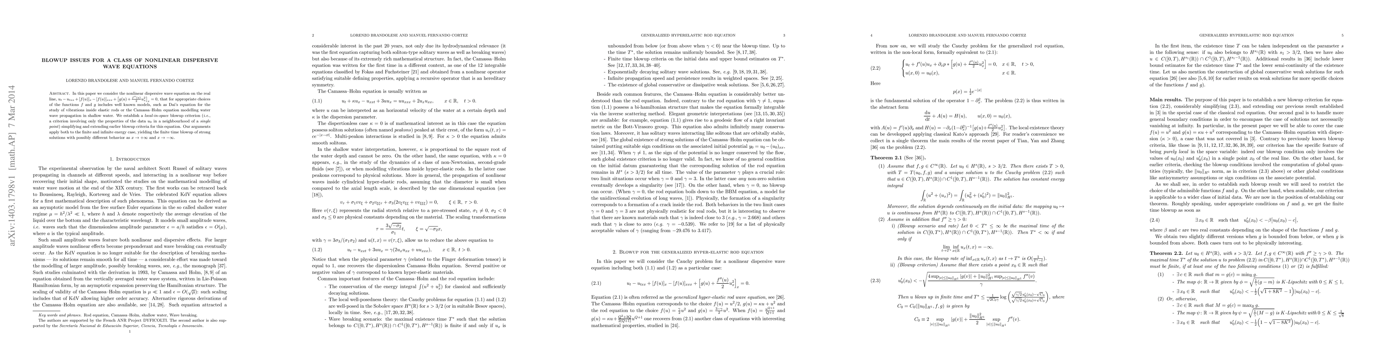 This research establishes a new local-in-space blowup criterion for a class of nonlinear dispersive wave equations, including models like Dai's equation for elastic rod vibrations and the Camassa--Holm equation for shallow water waves. The criterion applies to both finite and infinite energy cases, proving finite time blowup of strong solutions with varying behaviors at positive and negative infinity.