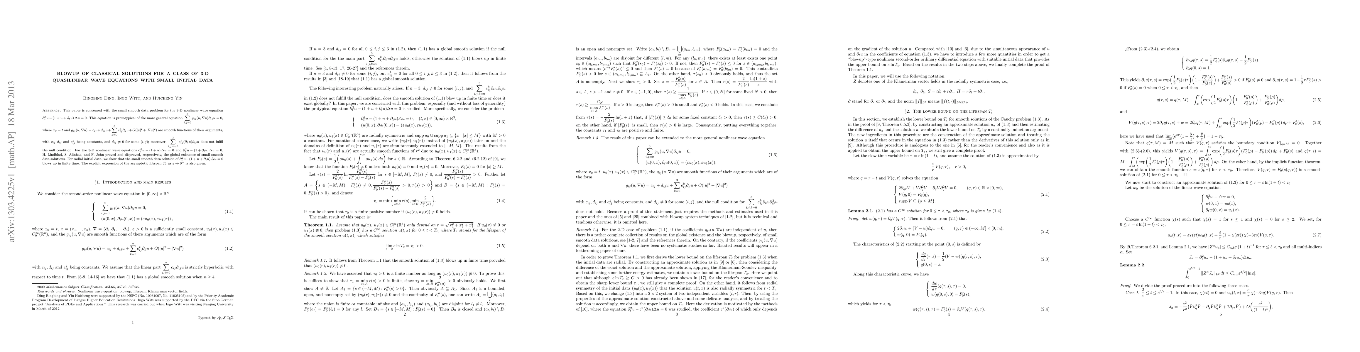 This paper shows that small initial data for a specific 3-D quasilinear wave equation leads to solutions that blow up in finite time, contradicting previous findings on similar equations.