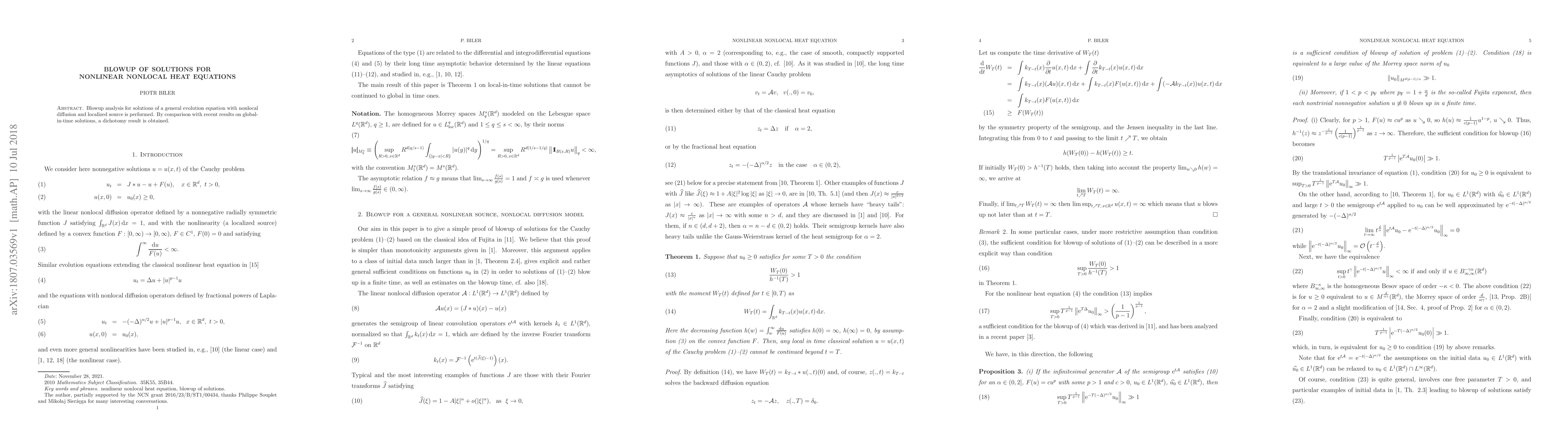 Summary: This paper investigates the blowup of solutions for nonlinear nonlocal heat equations, revealing a dichotomy between global-in-time solutions and those that exhibit blowup, through comparison with recent findings on global solutions.