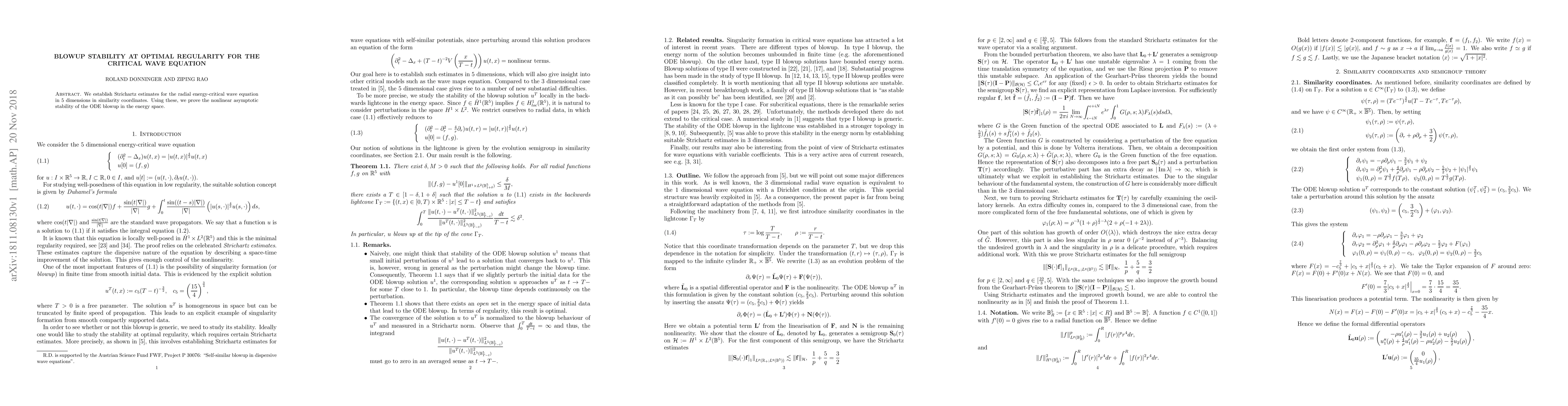 Summary: The paper establishes Strichartz estimates for the radial energy-critical wave equation in five dimensions and uses these to prove the nonlinear asymptotic stability of radial ODE blowup in the energy space.