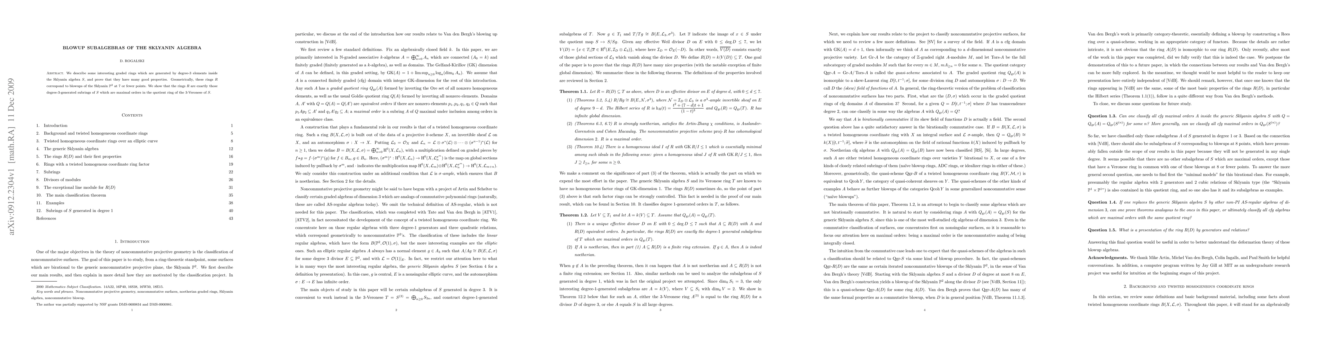Researchers discovered blowup subalgebras of the Sklyanin algebra that correspond to geometric blowups at 7 or fewer points, showcasing properties of maximal orders in the quotient ring of the 3-Veronese of S.