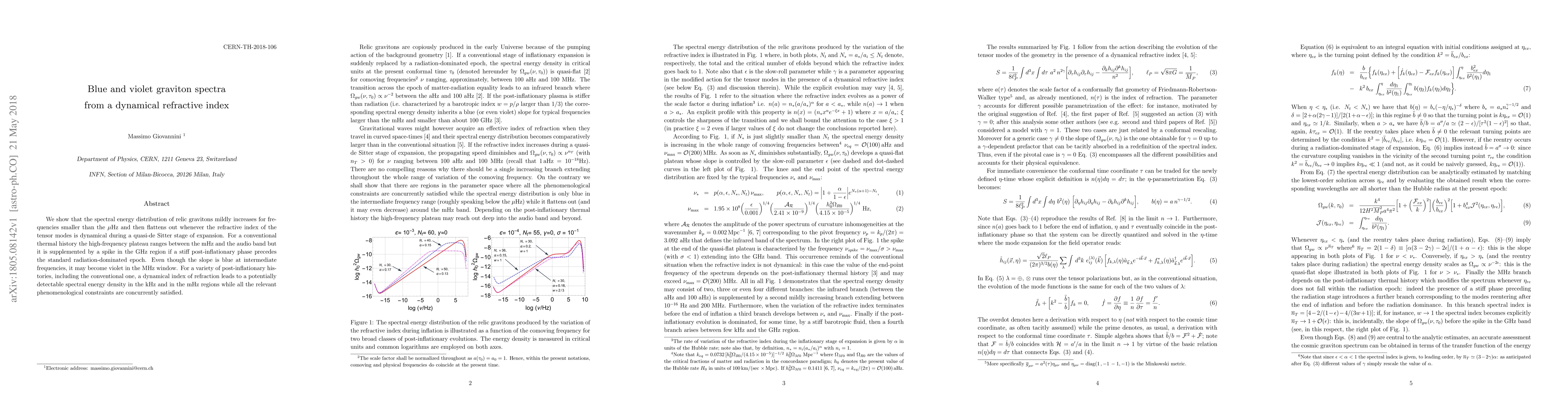 We show that the spectral energy distribution of relic gravitons mildly increases for frequencies smaller than the $\mu$Hz and then flattens out whenever the refractive index of the tensor modes is dynamical during a quasi-de Sitter stage of expansion. For a conventional thermal history the high-frequency plateau ranges between the mHz and the audio band but it is supplemented by a spike in the GHz region if a stiff post-inflationary phase precedes the standard radiation-dominated epoch. Even though the slope is blue at intermediate frequencies, it may become violet in the MHz window. For a variety of post-inflationary histories, including the conventional one, a dynamical index of refraction leads to a potentially detectable spectral energy density in the kHz and in the mHz regions while all the relevant phenomenological constraints are concurrently satisfied.