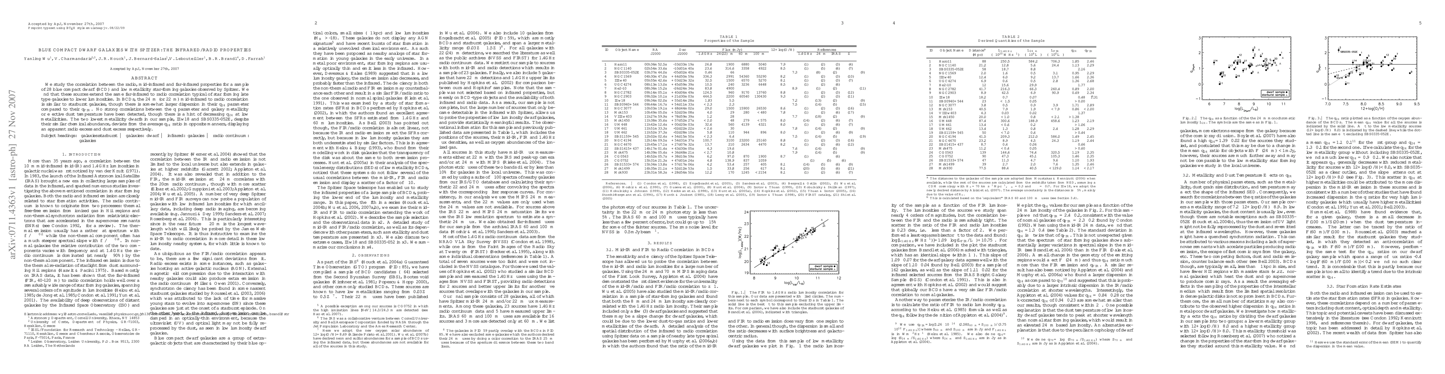 This study investigates the infrared and radio properties of 28 blue compact dwarf galaxies using Spitzer data, finding that these galaxies extend the far-infrared to radio correlation typical of star-forming late-type galaxies to lower luminosities. While no strong correlations between the q parameter and metallicity or dust temperature were detected, notable deviations were observed in the two lowest metallicity dwarfs, IZw18 and SBS0335-052E, which display opposite anomalies in their radio and dust characteristics.