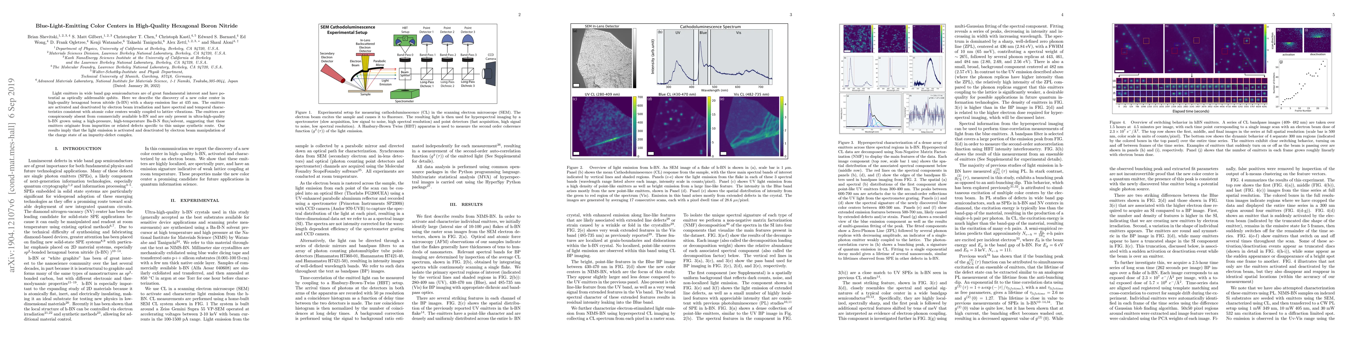 This paper reports the discovery of blue-light-emitting color centers in high-quality hexagonal boron nitride (h-BN) with a sharp emission line at 435 nm, activated by electron beam irradiation. These unique emitters are found only in ultra-high-quality h-BN synthesized via a specific high-pressure, high-temperature method, indicating their origin from impurities or defects specific to this synthetic route.