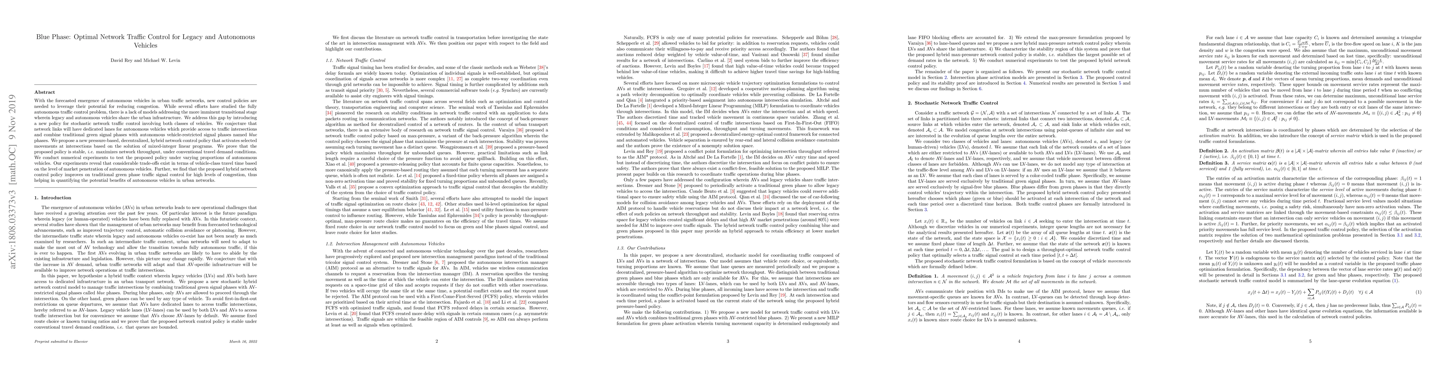 This paper introduces a new decentralized traffic control policy for urban networks that accommodates both legacy and autonomous vehicles. The proposed policy, which includes dedicated lanes and "blue phases" for autonomous vehicles, optimizes network throughput and improves congestion control, especially when autonomous vehicles are prevalent.