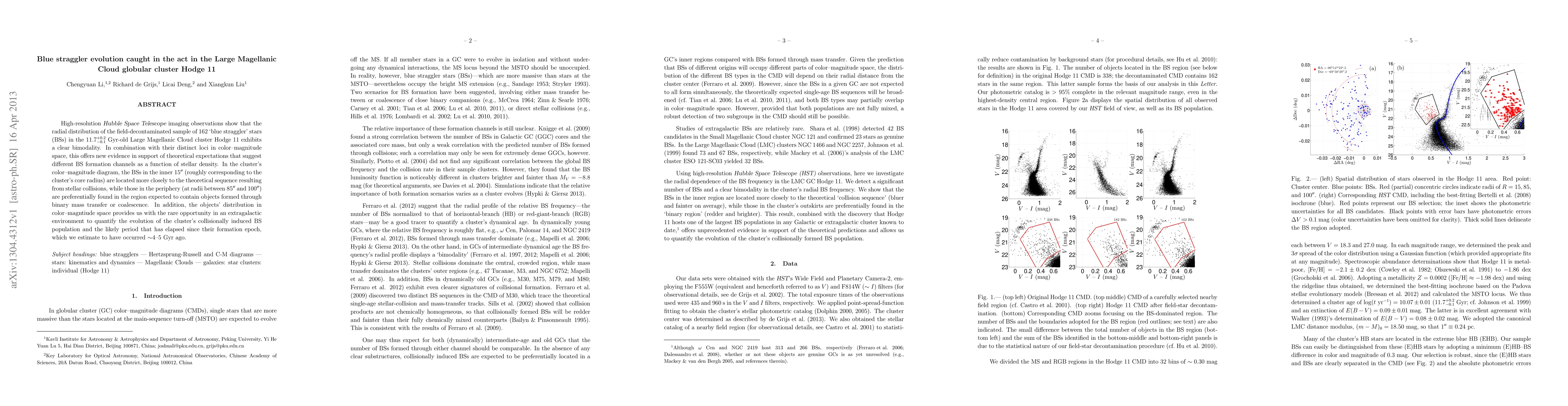 High-resolution {\sl Hubble Space Telescope} imaging observations show that the radial distribution of the field-decontaminated sample of 162 'blue straggler' stars (BSs) in the $11.7^{+0.2}_{-0.1}$ Gyr-old Large Magellanic Cloud cluster Hodge 11 exhibits a clear bimodality. In combination with their distinct loci in color--magnitude space, this offers new evidence in support of theoretical expectations that suggest different BS formation channels as a function of stellar density. In the cluster's color--magnitude diagram, the BSs in the inner 15$"$ (roughly corresponding to the cluster's core radius) are located more closely to the theoretical sequence resulting from stellar collisions, while those in the periphery (at radii between 85$"$ and 100$"$) are preferentially found in the region expected to contain objects formed through binary mass transfer or coalescence. In addition, the objects' distribution in color--magntiude space provides us with the rare opportunity in an extragalactic environment to quantify the evolution of the cluster's collisionally induced BS population and the likely period that has elapsed since their formation epoch, which we estimate to have occurred $\sim$4--5 Gyr ago.