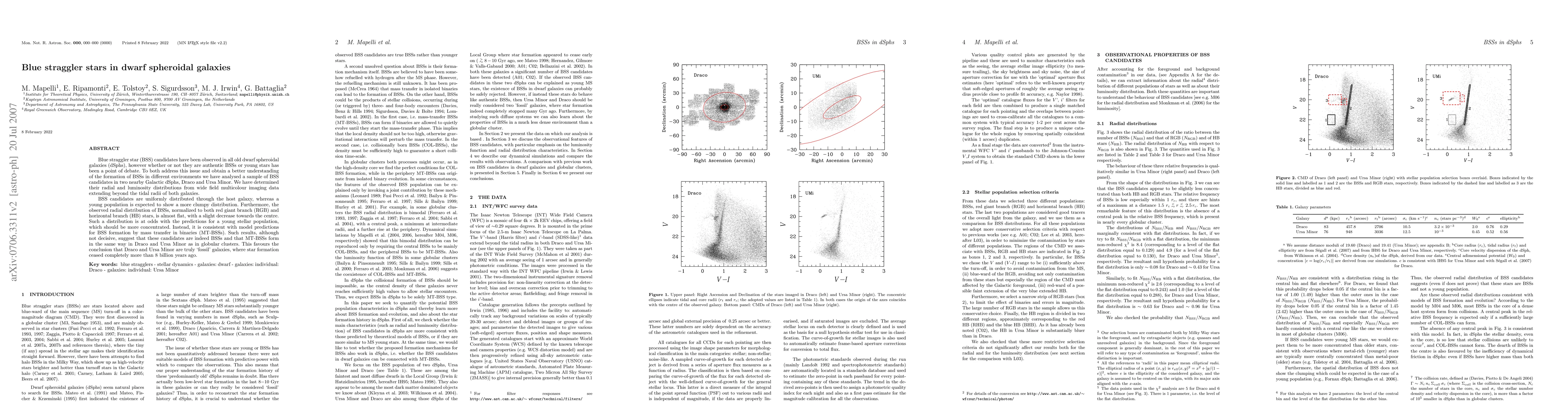 This study investigates blue straggler star candidates in the dwarf spheroidal galaxies Draco and Ursa Minor, finding their uniform radial and luminosity distributions suggest they are authentic blue stragglers formed via binary mass transfer, rather than young stars. These findings support the notion that these galaxies are 'fossil' remnants with no recent star formation.