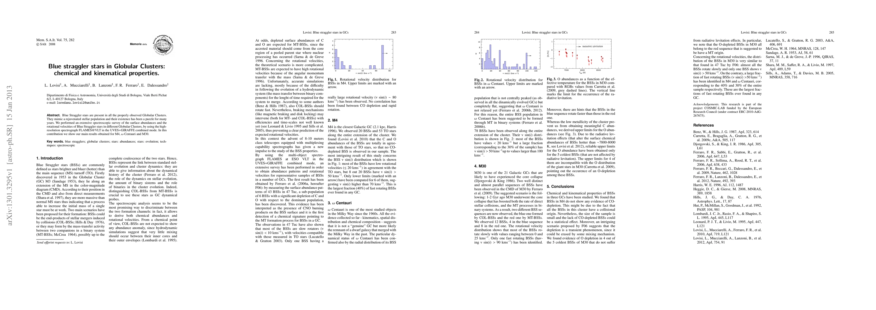 This research investigates the chemical and kinematic properties of Blue Straggler stars in three globular clusters using high-resolution spectroscopy. The study reveals unique surface abundances and rotational velocities, shedding light on the rejuvenated stellar populations these stars represent.